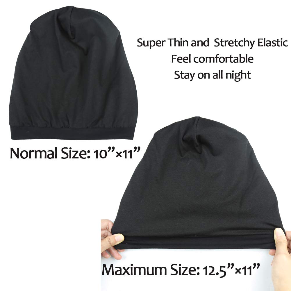- QUALITY ELASTIC BAND. Ultra-thin & stretchy soft elastic band makes the slouchy beanie fit most head sizes. It will make you feel safe because the beanie can stay on your head all night and keep hair in place.
