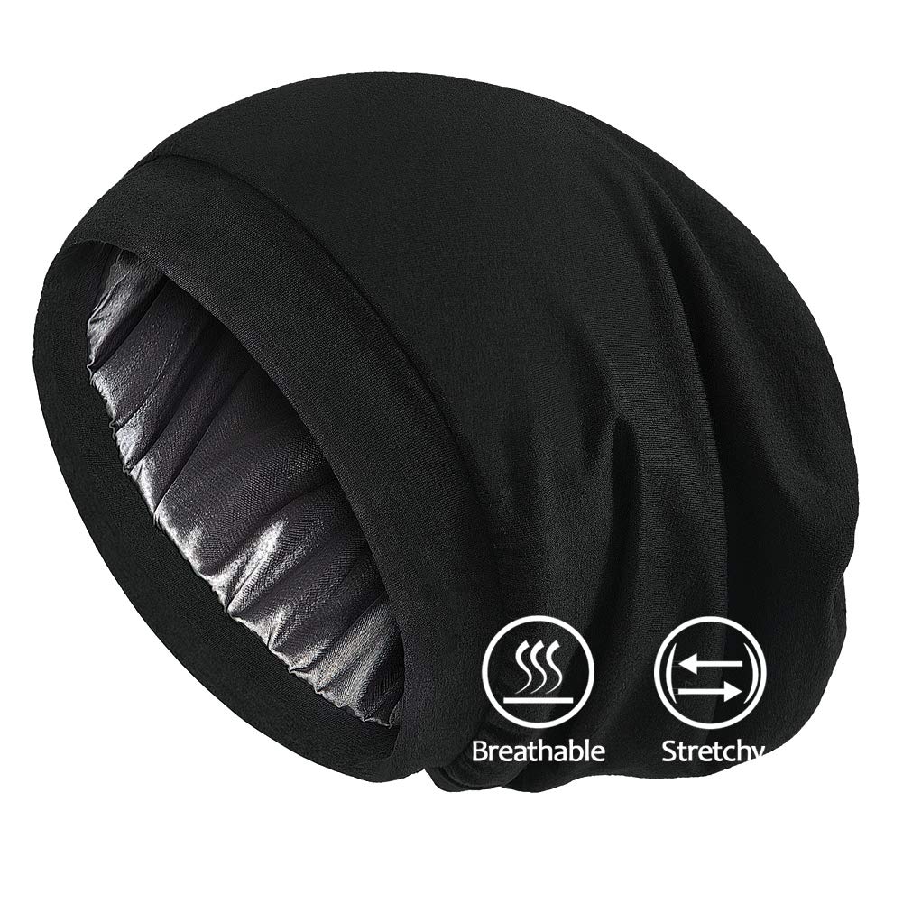 - GREAT FOR ALL HAIRSTYLES. Stretchy elastic and baggy material make the hat fit snugly. Perfect gift for men and women with frizzy hair, natural hair, long curly hair or short hair. Suitable for chemo patients with hair loss as well.