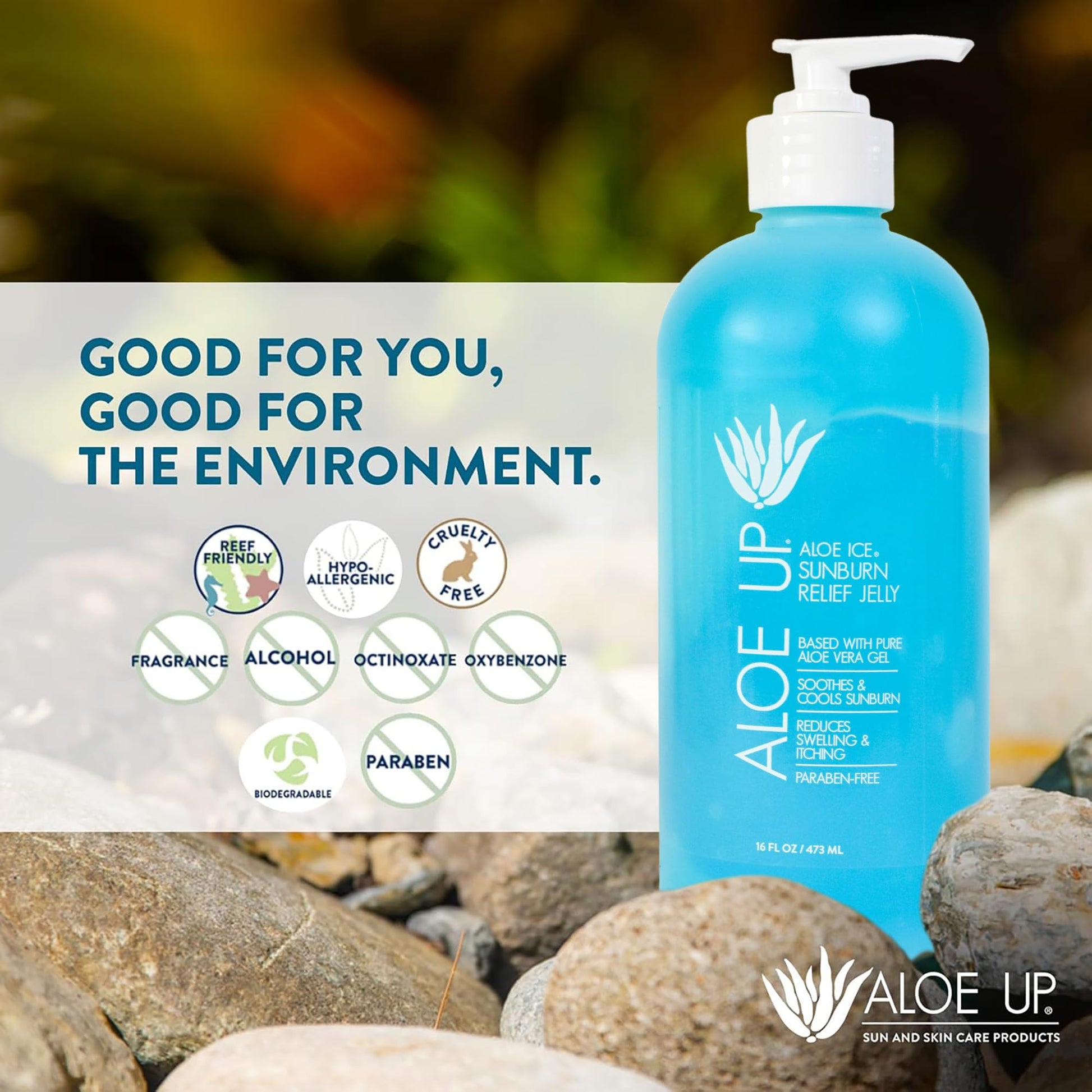 Aloe Ice Sunburn Relief Jelly – Face and Body Organic After Sun Gel – with 96.6% Pure Aloe Vera Gel – Reef Safe – Alcohol- and Fragrance Free – 16oz