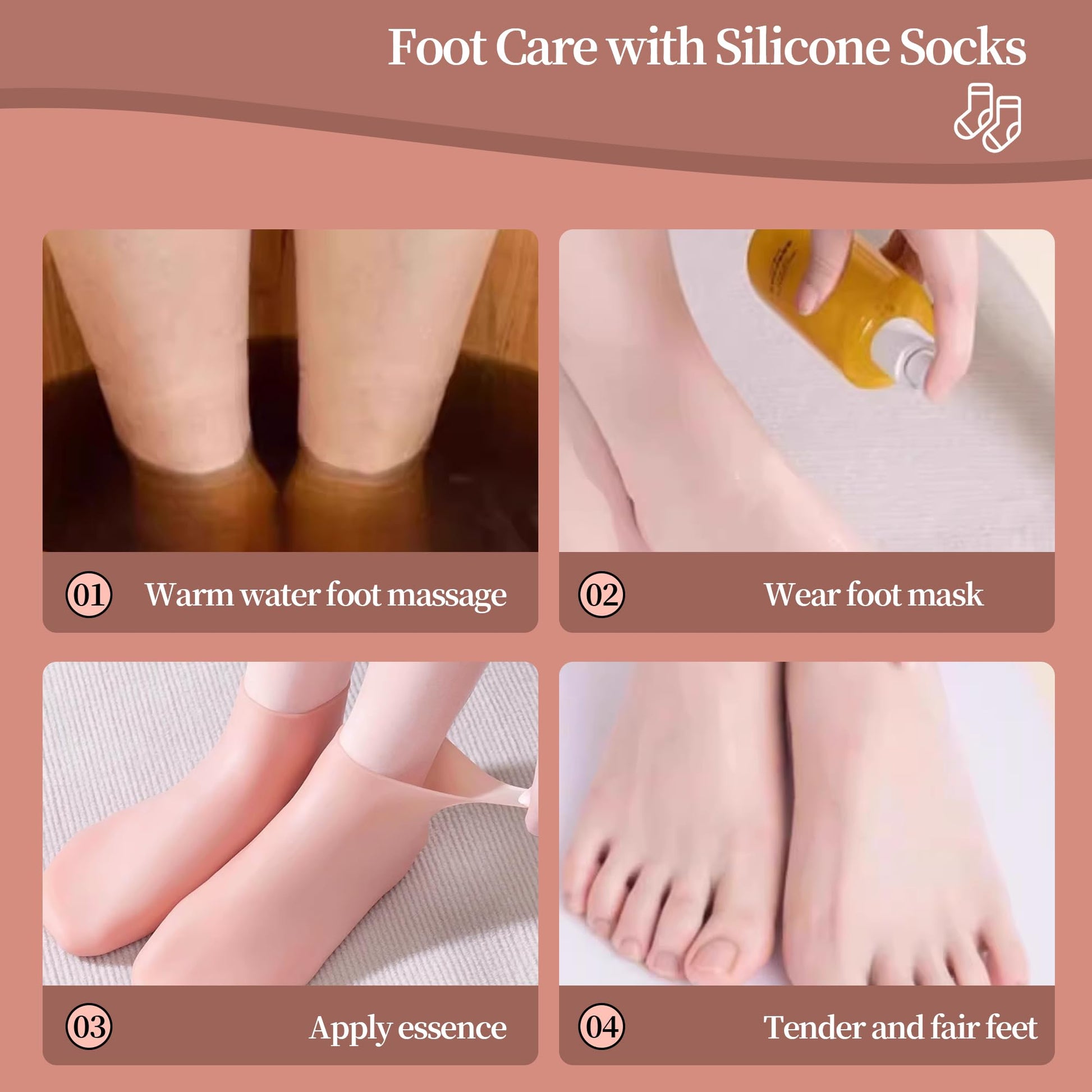 - 【Your Personal Foot Spa】Slip on our women's silicone socks and enjoy the luxury of a personal foot spa. These gel socks are a must-have for anyone suffering from cracked feet, outperforming traditional heel socks. Enjoy the nourishing effects of these moisturizing socks without the hassle of frequent salon visits, keeping your feet soft and crack-free all year round.