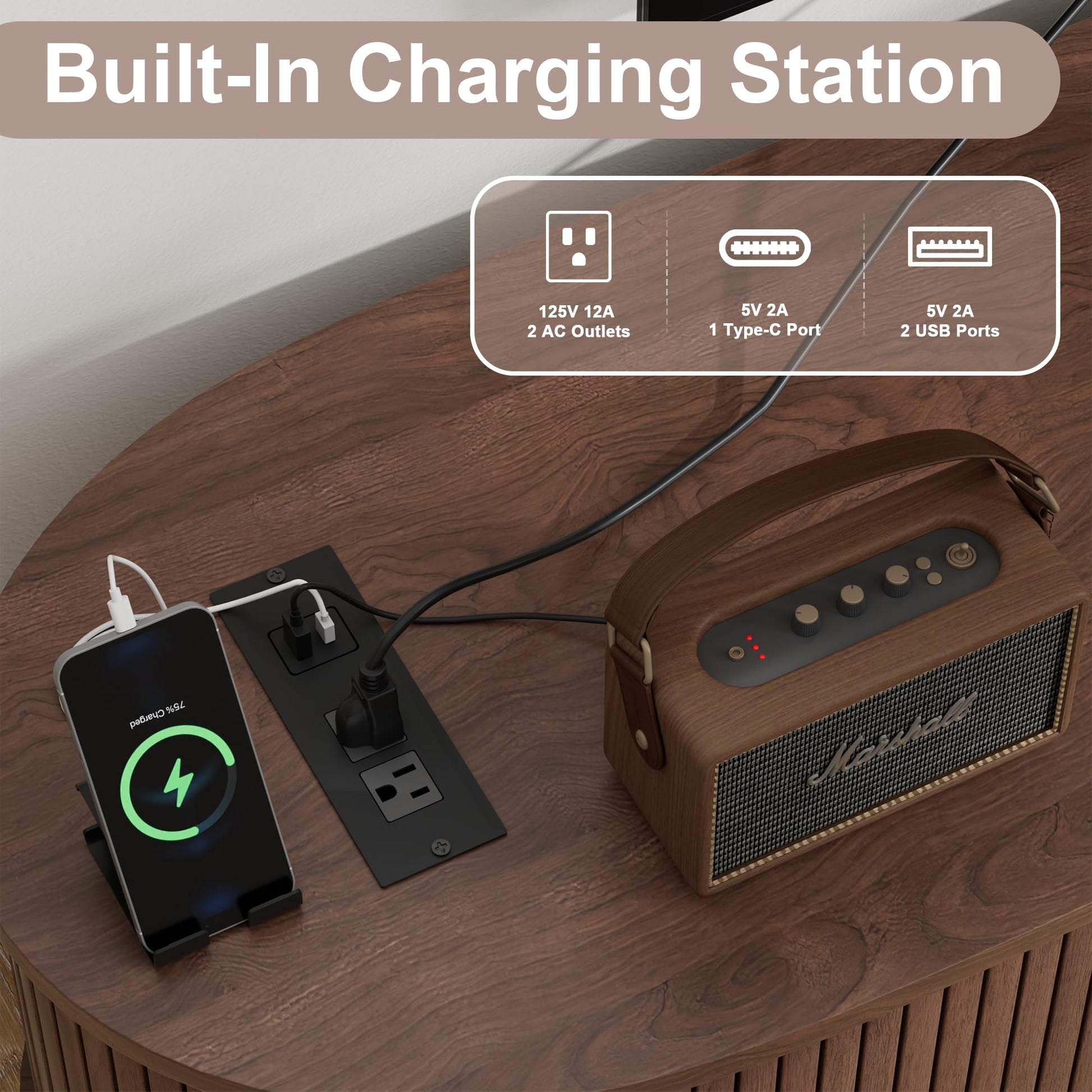 Alohappy 69" Mid Century Modern TV Stand with Charging Station, Farmhouse Curved Edge TV and Media Console Table with Drawer and Shelf, Fluted Entertainment Center for Living Room, Bedroom, Walnut