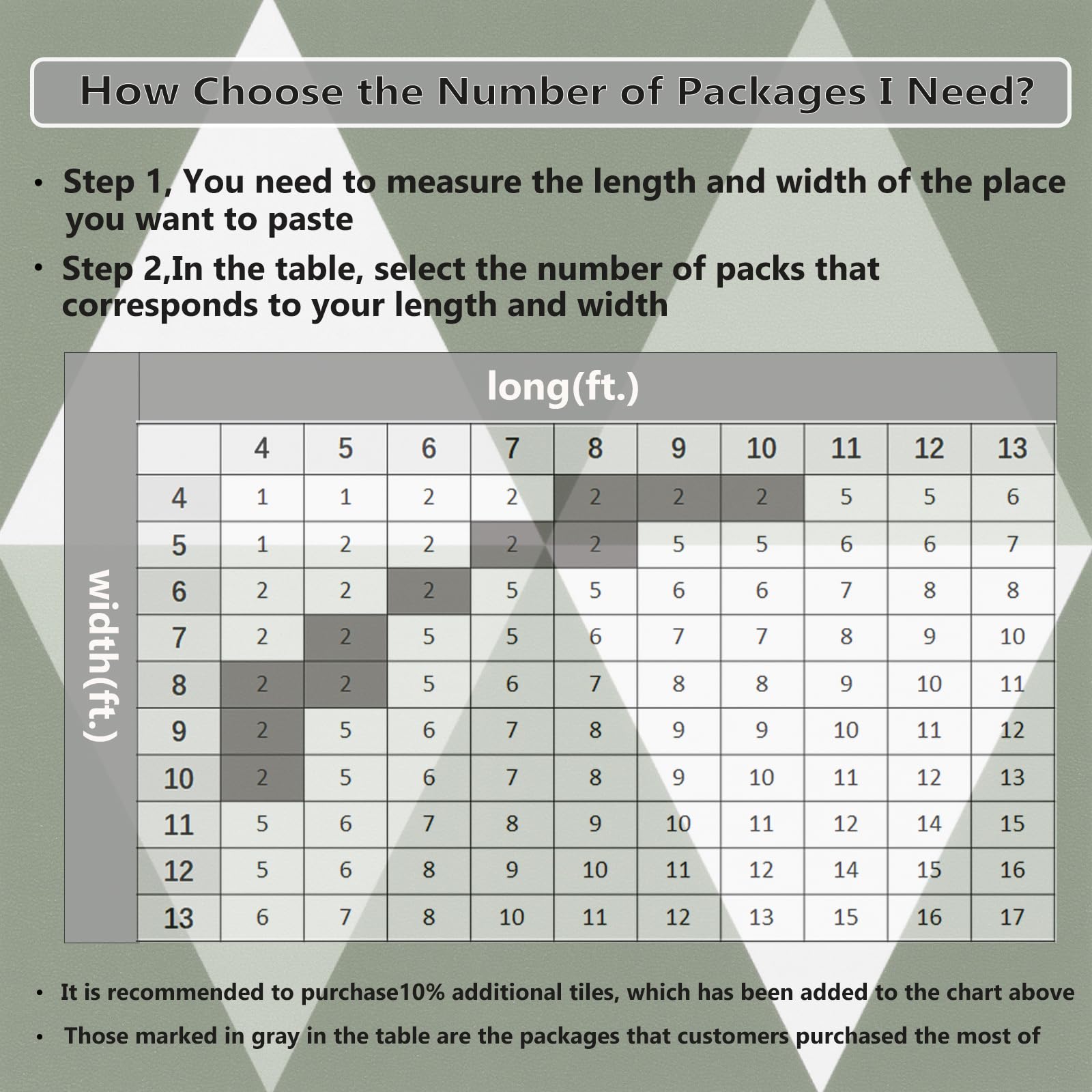 - γππ’π³πγ: Our tile size is 12x12 inches, with 10 tiles per pack. 10 pieces of vinyl flooring can cover 10 square feet. If you are unsure of how many packages you need to purchase, please let us know the area you require so we can calculate the quantity you need