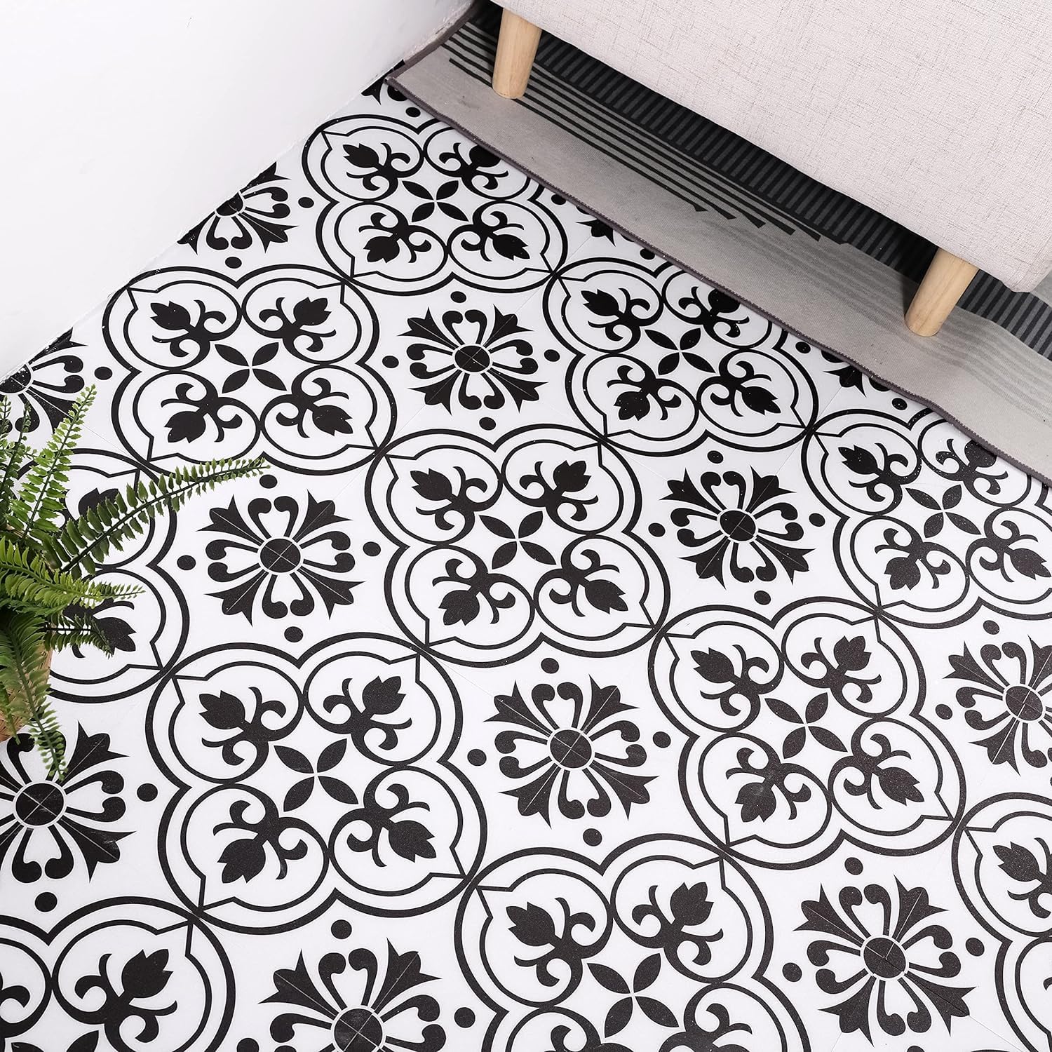 - ใ๐๐ญ๐ฒ๐ฅ๐ข๐ฌ๐ก ๐๐๐ฌ๐ข๐ ๐งใWith its black and white flower pattern, our peel and stick flooring adds a touch of elegance to any room. Whether you prefer a modern or traditional style, these tiles will complement your decor perfectly