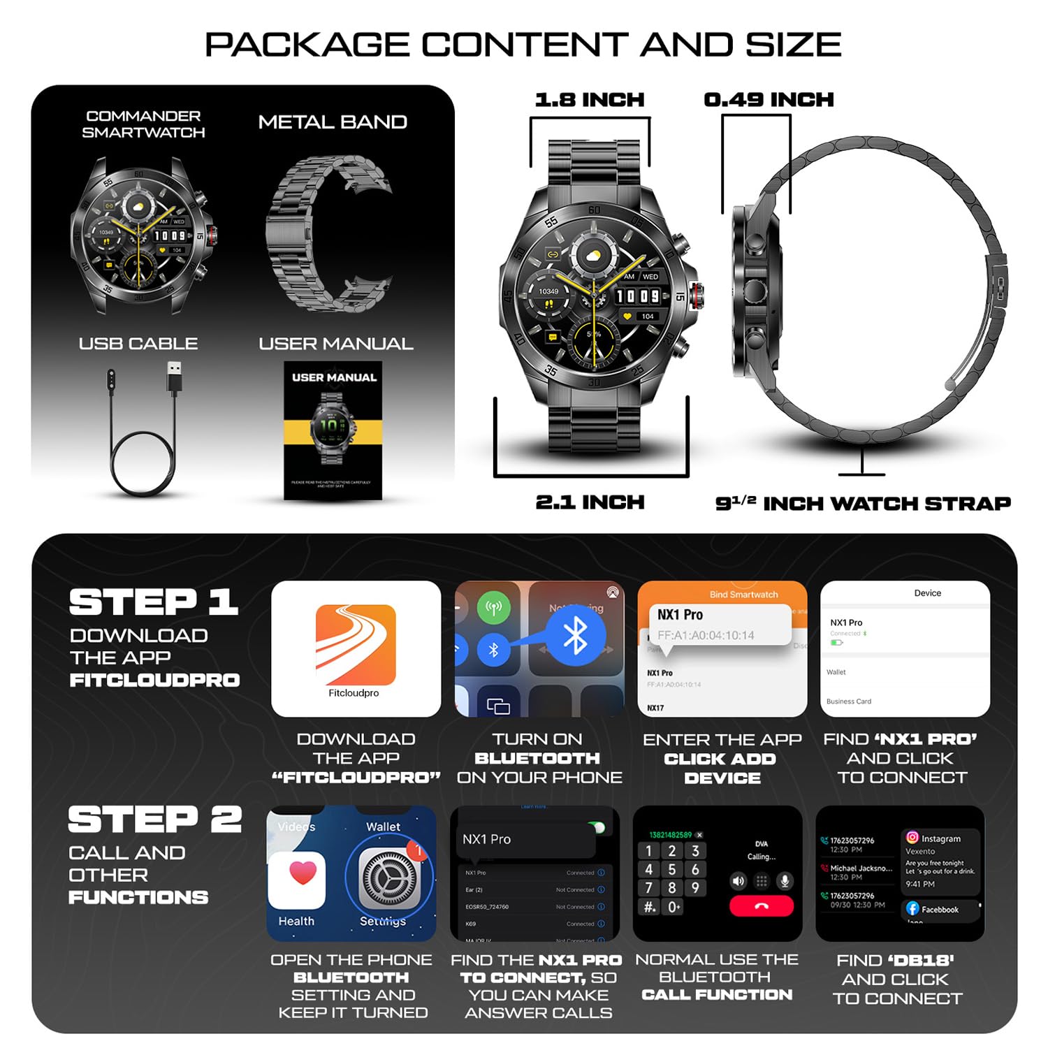 - 【RUGGED HD MILITARY SMART WATCH】- Commander Outdoor Tactical Smart Watch is made with the toughest materials in the industry such as Stainless Steel (904L), Zinc Alloy, and Titanium, our latest innovation is the only full-metal smartwatch that can withstand extreme conditions while maintaining an elegant look.