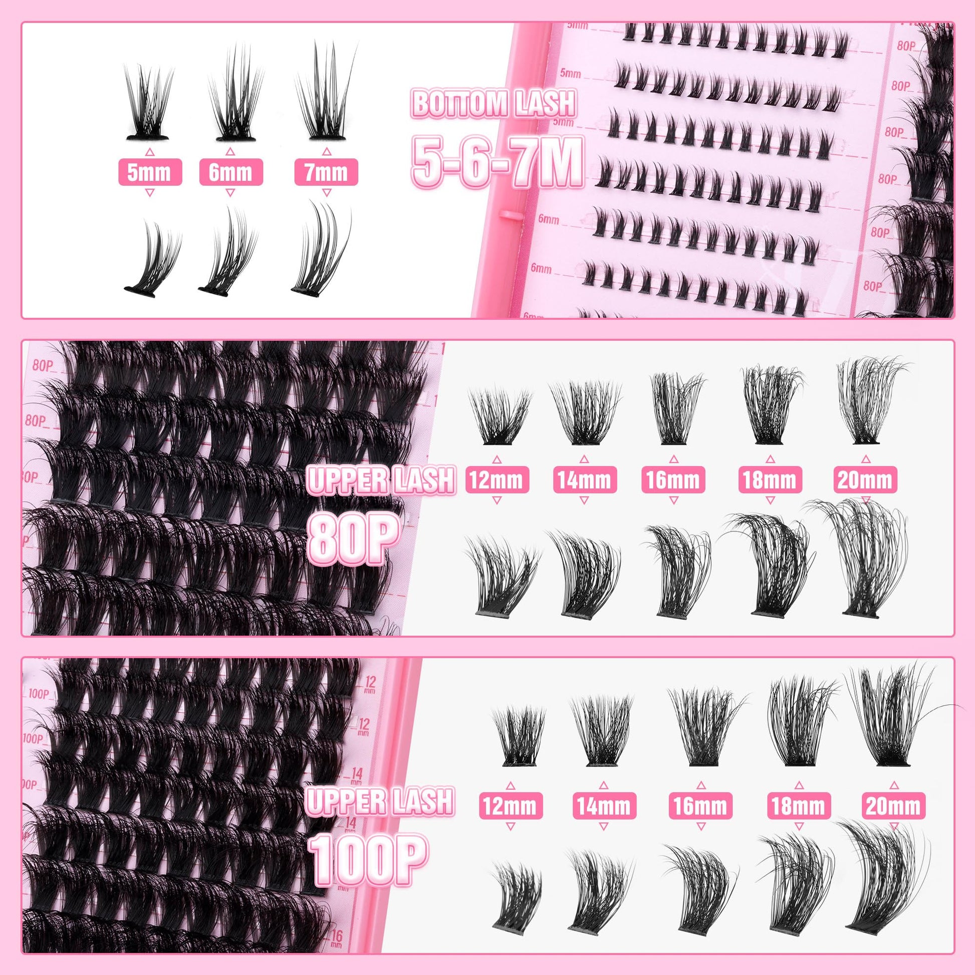 - 【80D+100D Lash Cluster+Bottom Lashes】- Elevate your everyday look with our exclusive set of 200pcs Fluffy Cluster Lashes in mixed lengths from 12-20mm, paired with 120pcs Bottom Lashes Cluster ranging from 5-7mm. This complete lash kit totally offers 320pcs eyelash clusters, empowering you to achieve professional-grade lash extensions effortlessly at home.