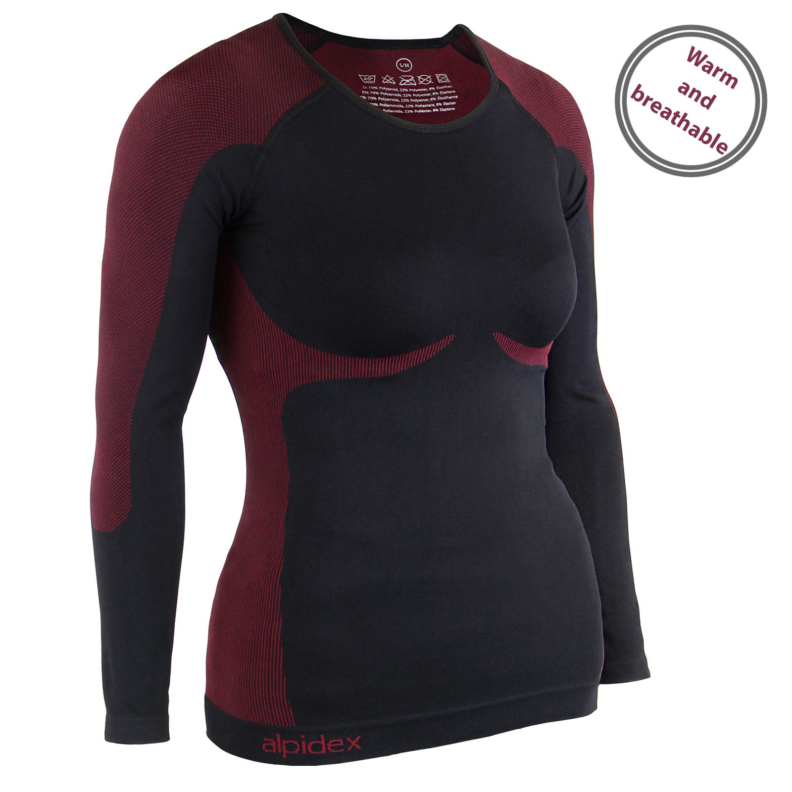 ALPIDEX Functional Wear Thermal Underwear Woman Ski Breathable Quick Drying Clothing Warm Base Layer Ladies Cold Weather Set Long Johns Top Bottom, Size:2XL/3XL, Colour:Black-Red