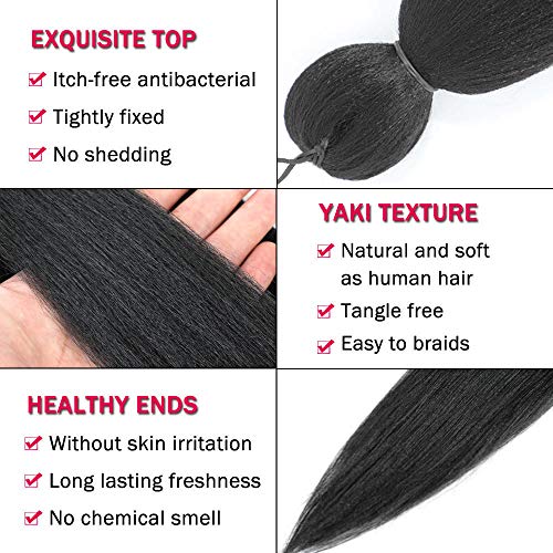 - 【Hair Material】: Pre Stretched Braiding Hair Made Of High Quality Low Temperature Flame-Retardant Synthetic Fiber. Yaki Texture, Natural Looking And Soft Touch As Human Hair.