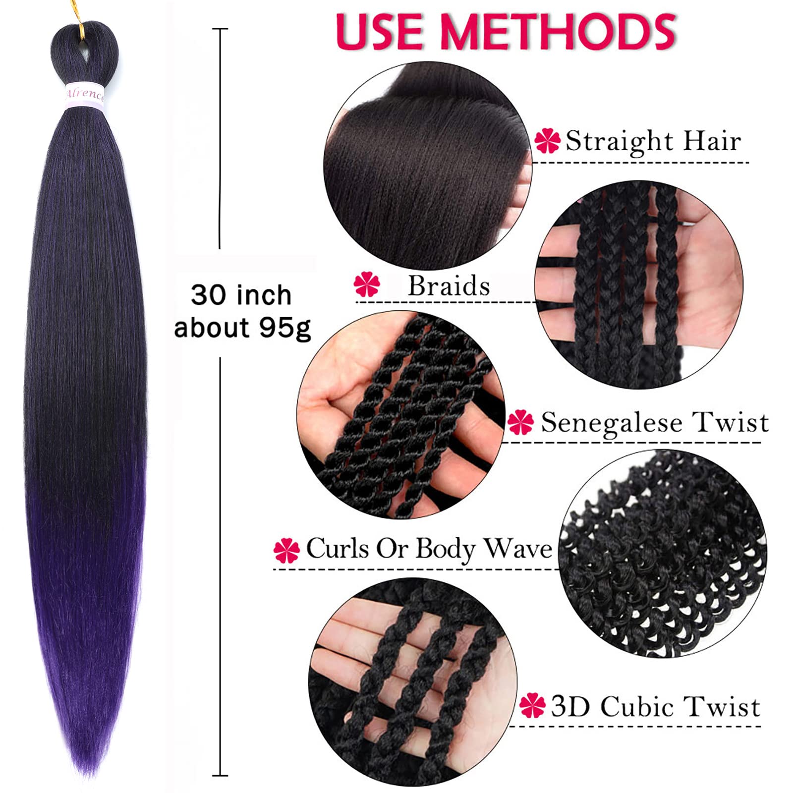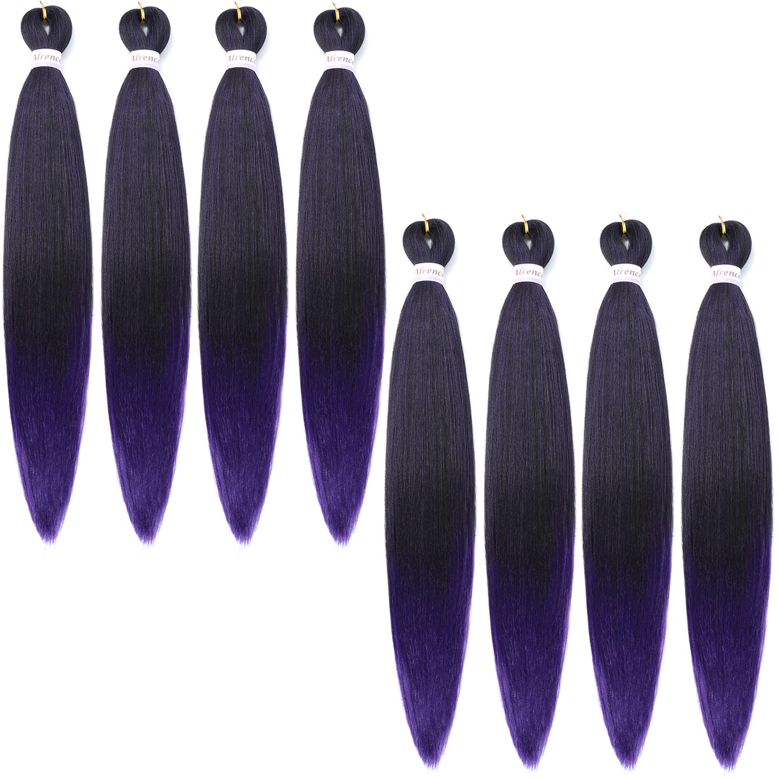 Alrence Pre Stretched Braiding Hair Long Braid 30 Inch 8 Packs Professional Braiding Hair Extensions Synthetic Crochet Twist Braids (30 Inch, 1B/Purple)