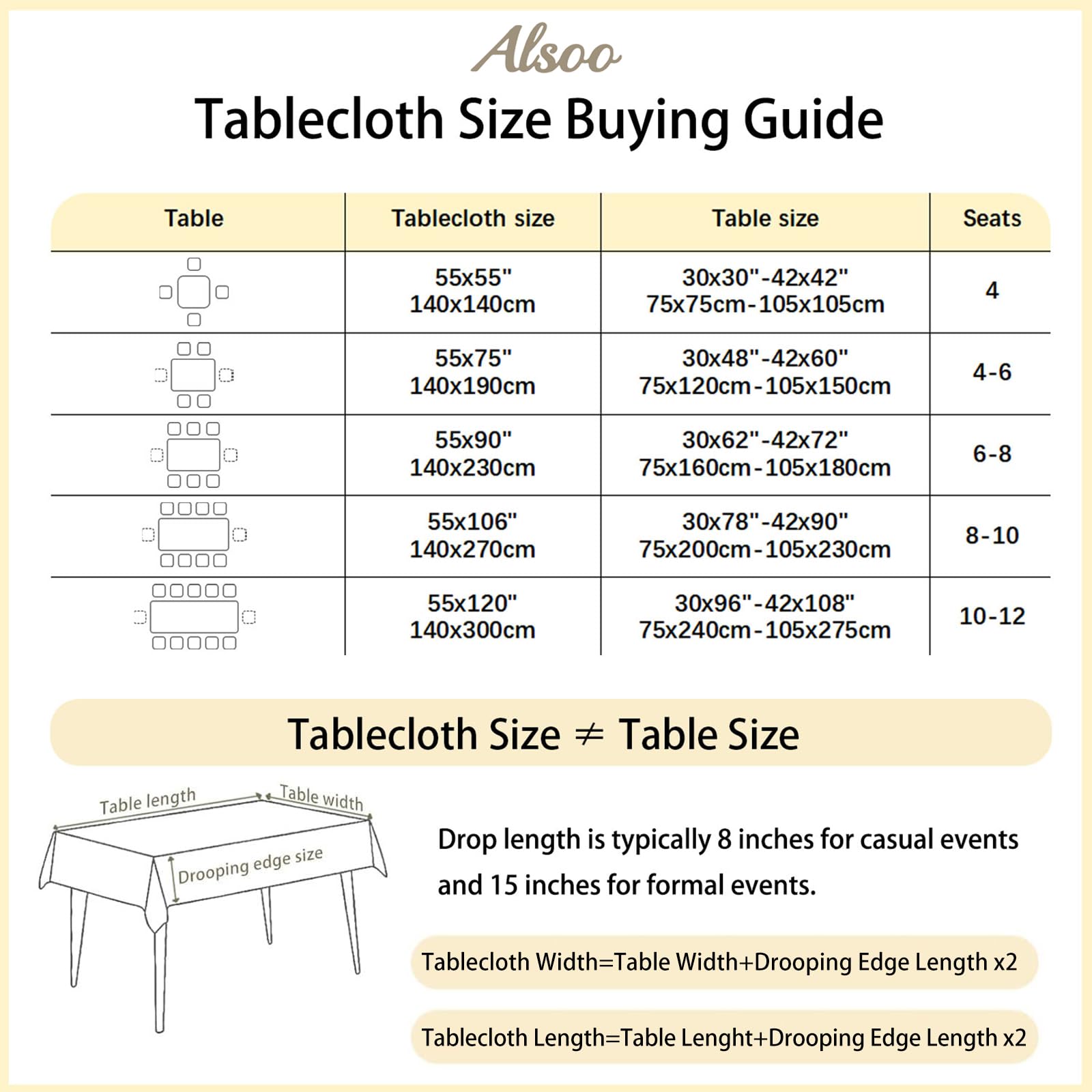 - Choose Your Tablecloth: Measure the size of the table, tablecloth rectangular is recommended to increase the table length by more than 20 inches (10 inches on one side) to get a better drop effect