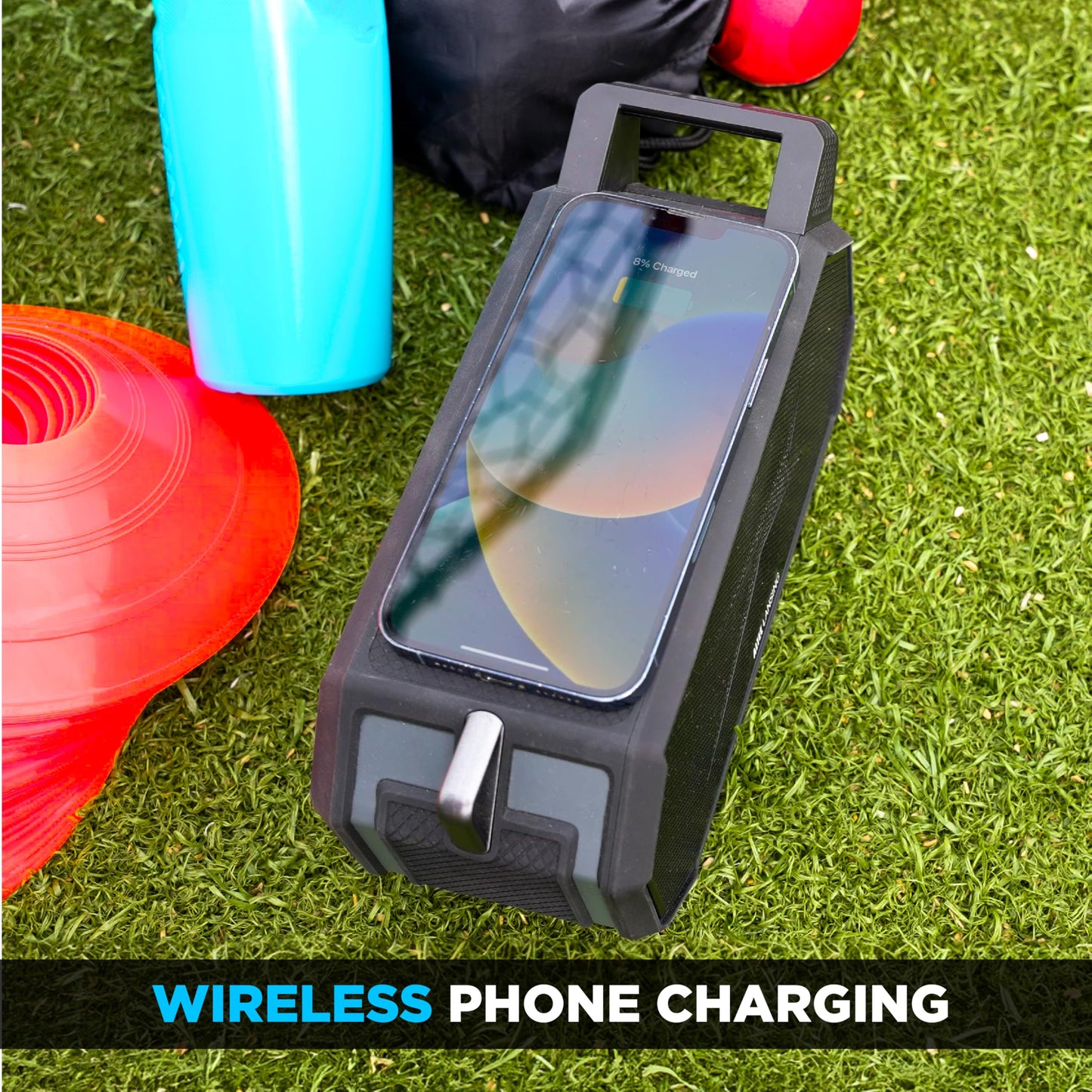 Altec Lansing Portable Bluetooth Speaker HYDRABOOM 2.0, 32W Output Power, 16Hr Playtime, Party Sync, Qi Wireless Charging, Everything-Proof, Voice Assistant Compatible - Black