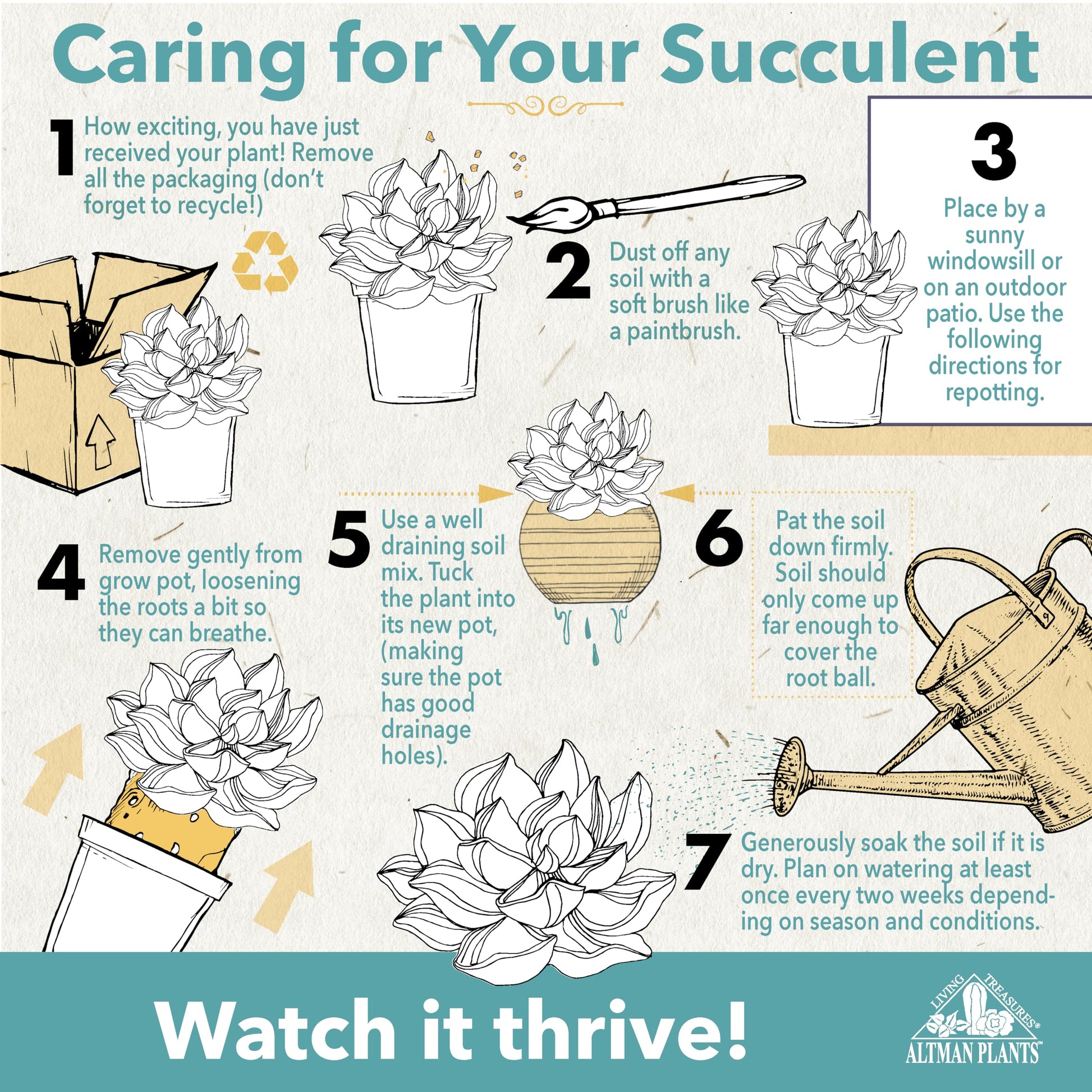- PACKAGING: All plants come with helpful care instructions and are packaged with care at our facility by our succulent shipment specialists