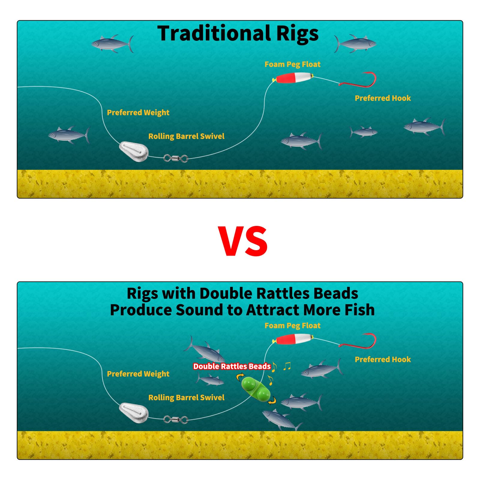 - 【Catch More Fish】 Double rattles beads are especially suitable for making catfish rig and other rigs. Compared to rigs that do not produce sound, rigs with double rattles beads that produce sound to attract more fish.