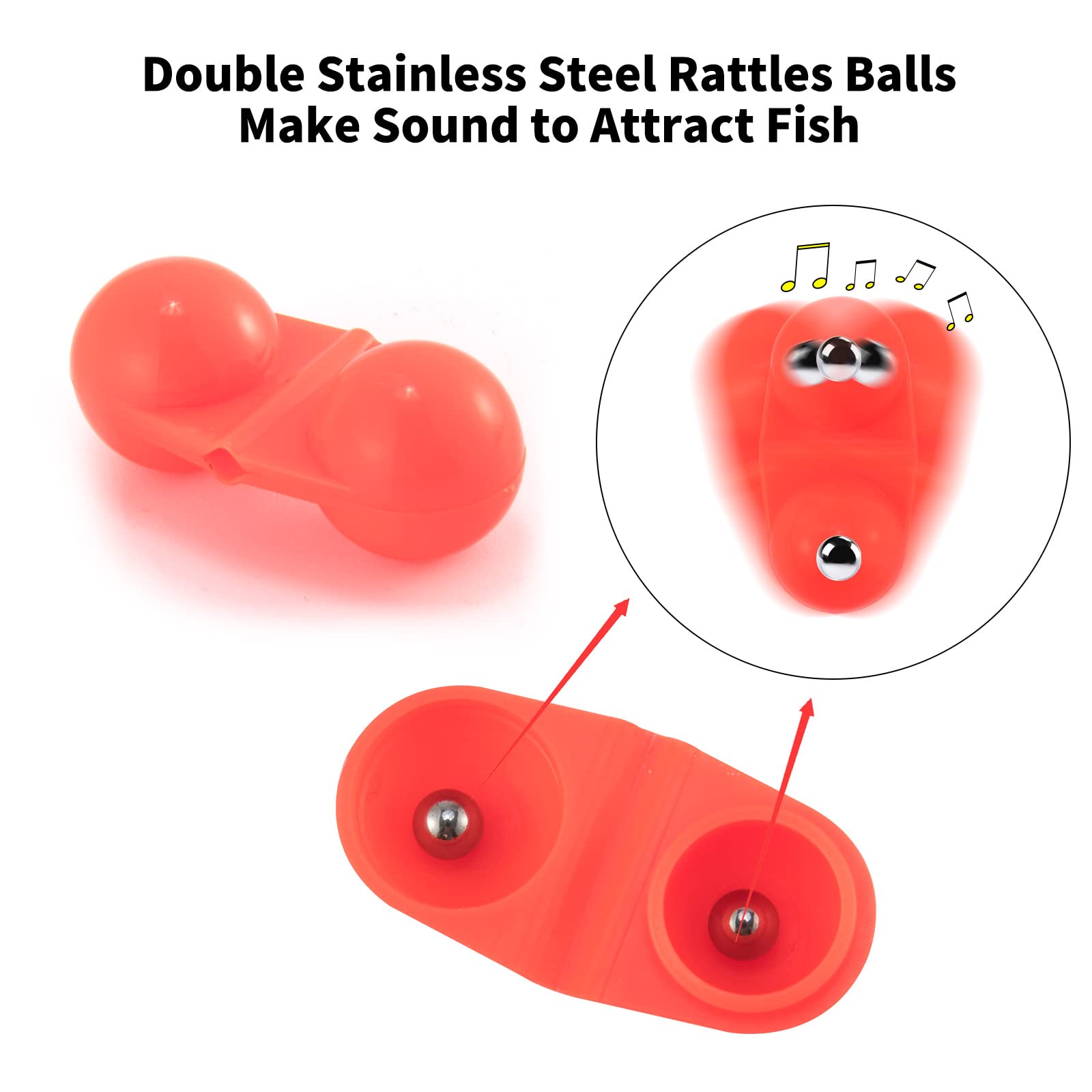 - 【Durable and Colorful】 Double rattles beads are made with high quality ABS plastic material, durable and hard. At the same time, they have colorful colors for visual stimulus, which is difficult for predatory fish to resist.