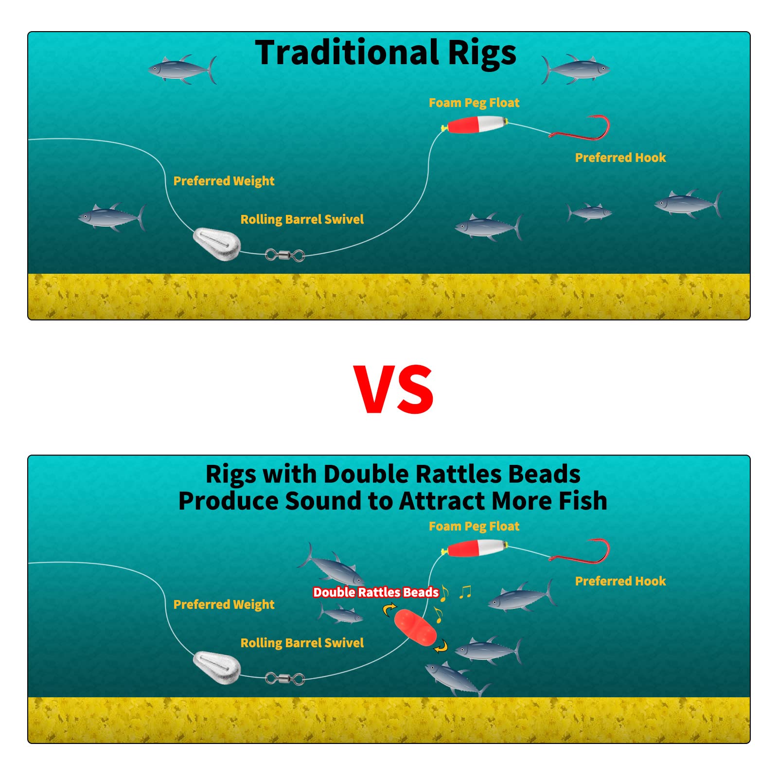 - 【Catch More Fish】 Double rattles beads are especially suitable for making catfish rig and other rigs. Compared to rigs that do not produce sound, rigs with double rattles beads that produce sound to attract more fish.