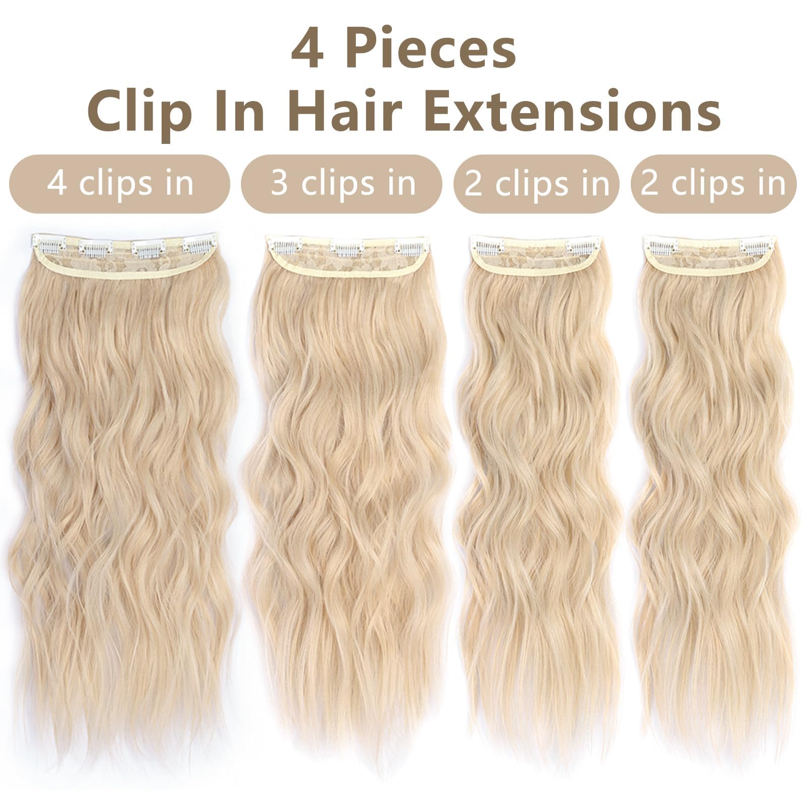 - ❤【Advantages of 4PCS Clip in Extensions】: Compared to traditional hair extensions,No tape,No glue, our hair extension only uses BB clips to fix.You can finish it in minutes.And no pressure, no damage to the scalp. this long hair wavy extension is safer and more comfortable. They can be cut, permed and washed. You don't need to rush to the Salon for a party, or be upset in an overslept morning; just spend 5 minutes wearing these hair pieces, then a charming and elegant look will appear.