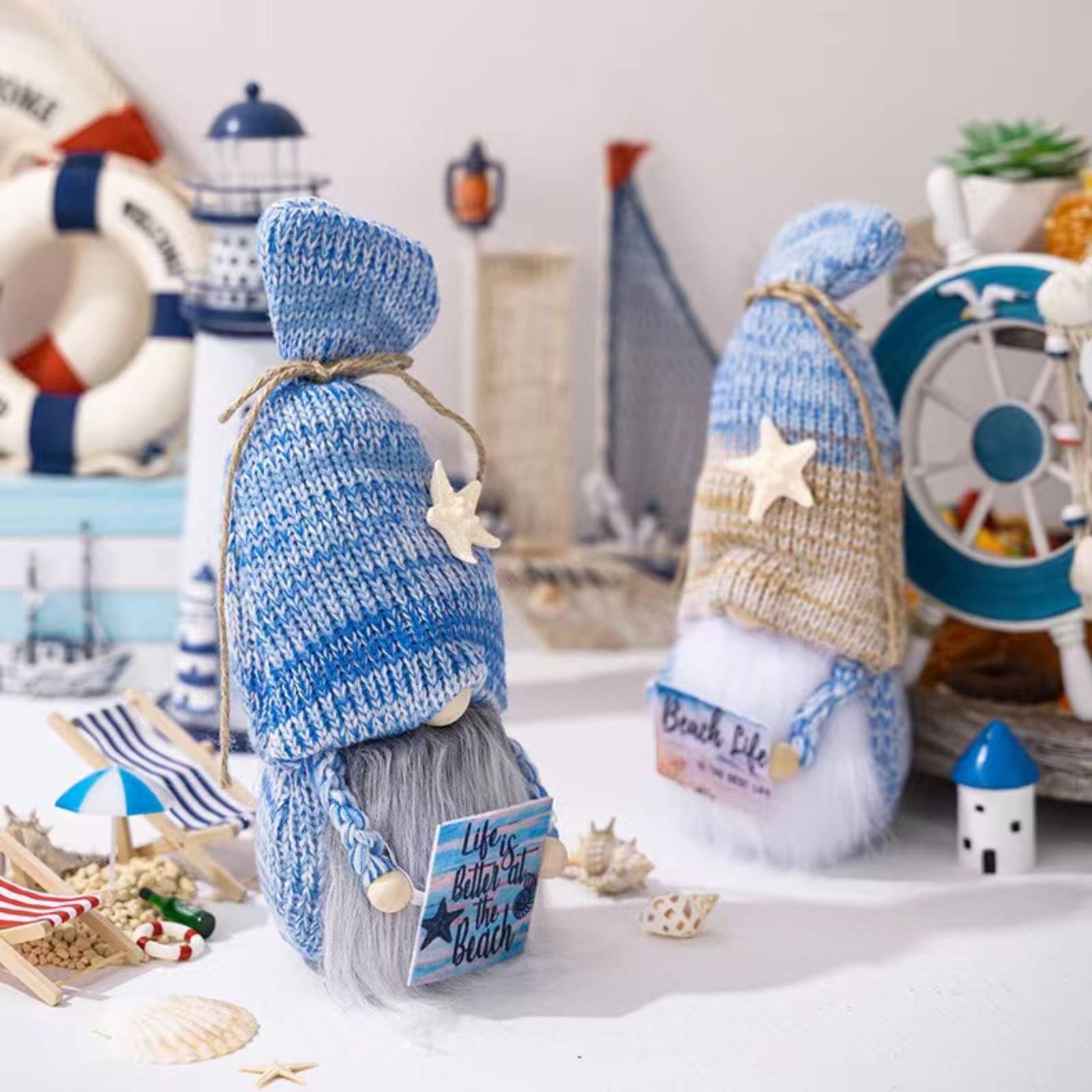 - 🌴【Handmade with Care】Each gnome figurine is handmade from premium plush and felt, with carefully glued starfish and seashell accents. Lightweight yet durable, it adds a whimsical touch to any summer tiered tray decor or tabletop.