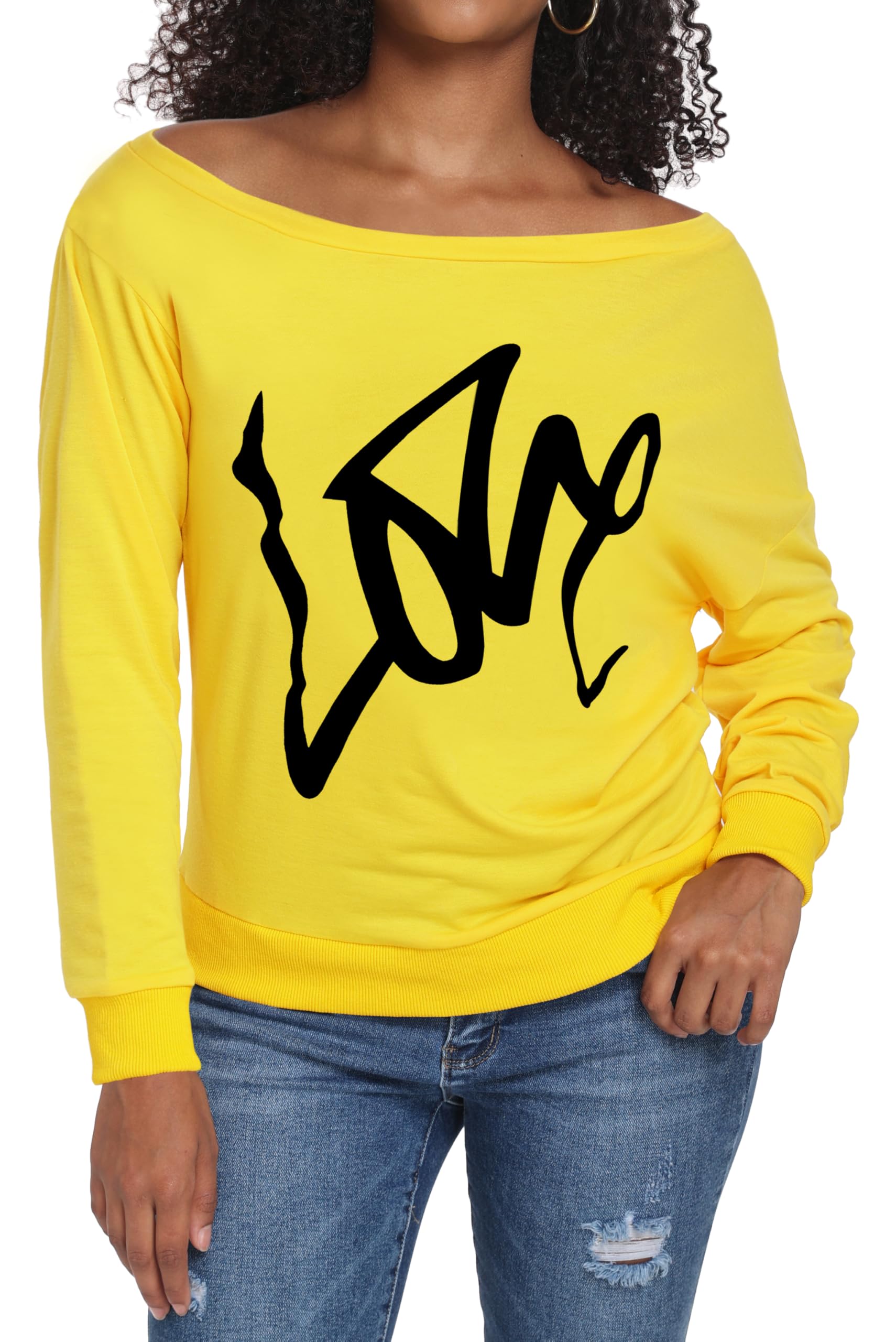 AM CLOTHES Sweatshirt for Women Off Shoulder Oversized Sweatshirts Long Sleeve Sweaters Shirts Tops X-Large 01-yellow