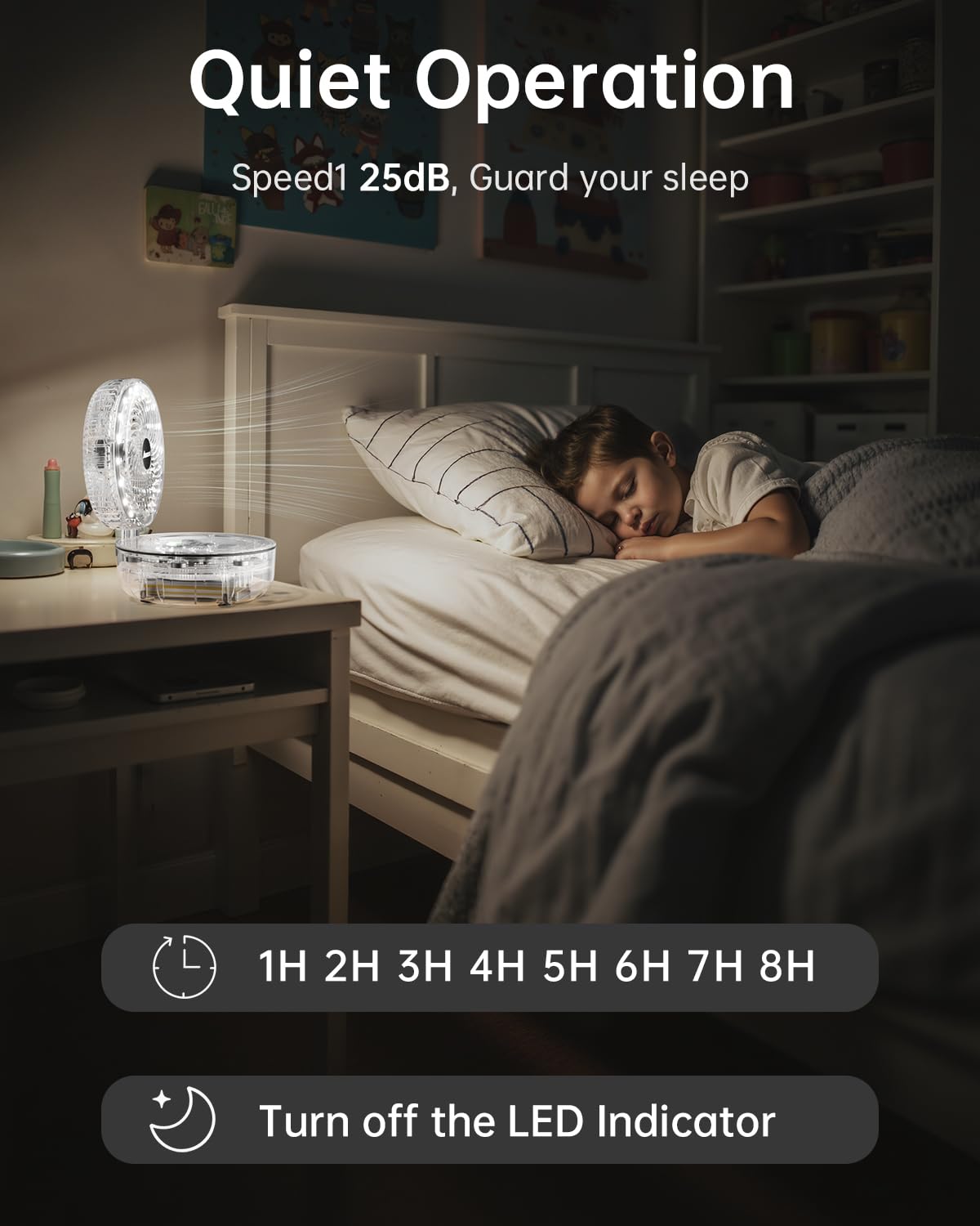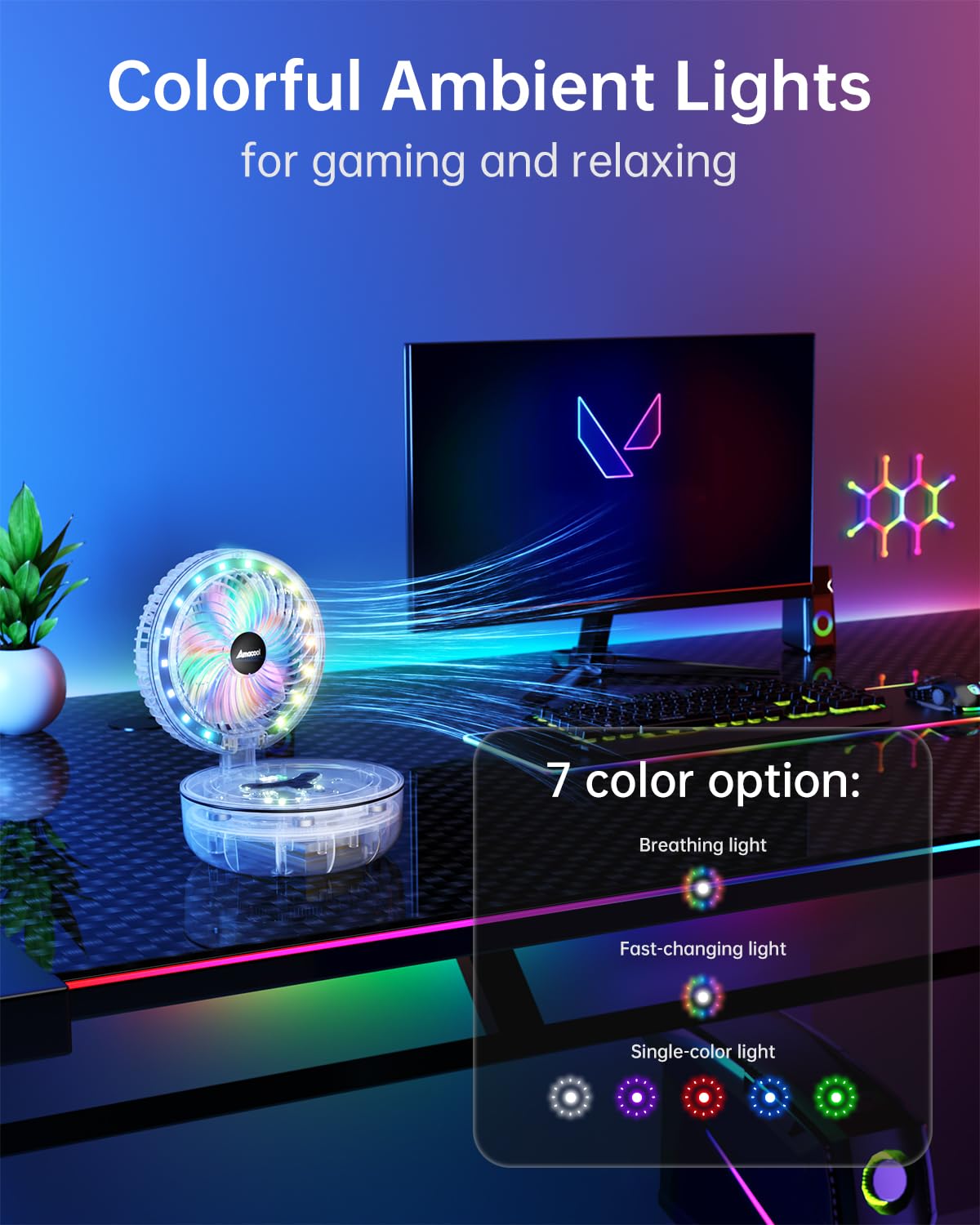 AMACOOL Transparent Folding Desk Fan, [Max 83Hrs Runtime] 20000mAh 8 Inch Rechargeable Portable Fan for Travel, 90° Oscillating 5 Speeds with Ambient Light, 8H Timer for Cruise, Camping, RV, Home
