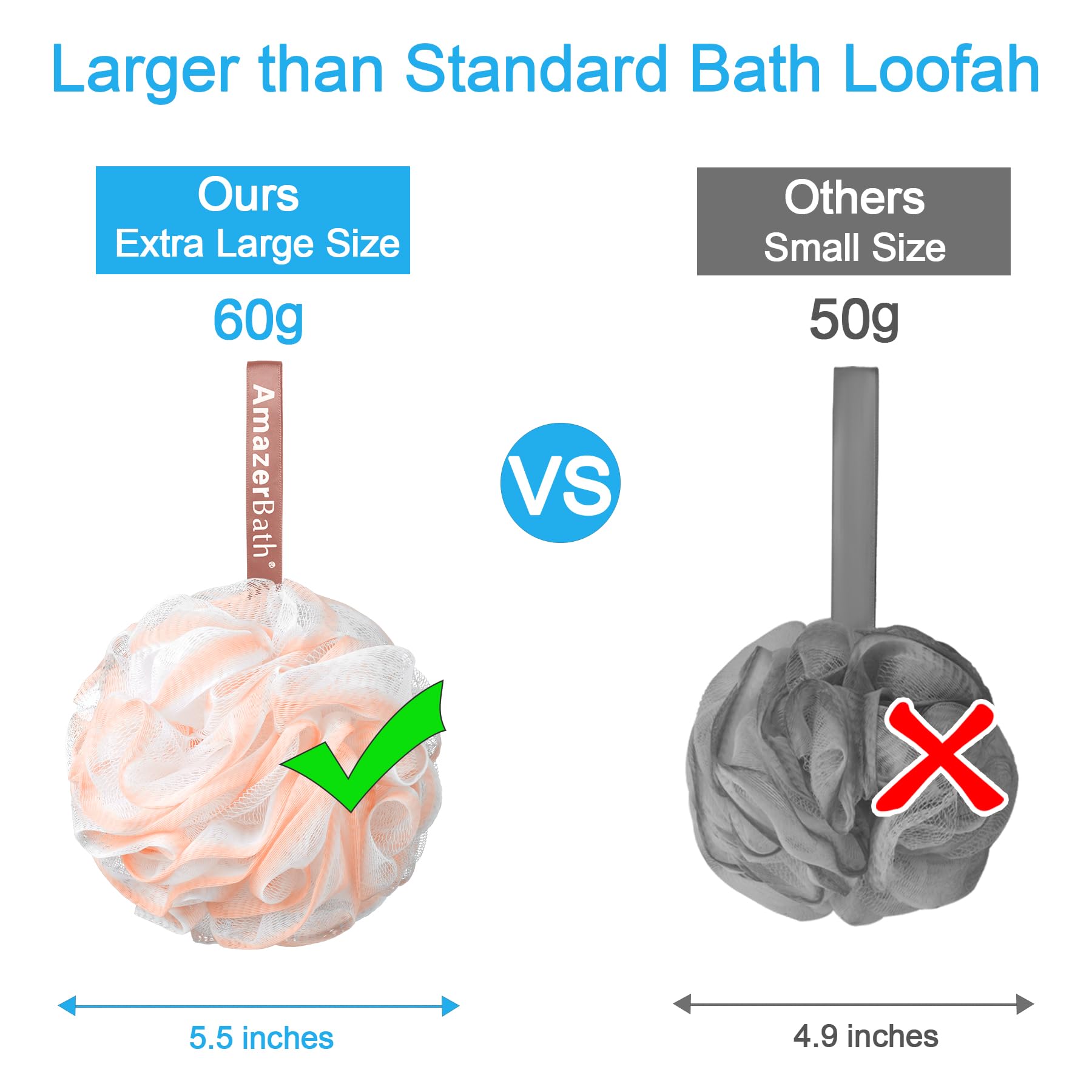 - Nice foaming effect: The AmazerBath loofah sponge has a dense, fluffy mesh that allows you to create a rich and luxurious lather with just a small amount of body wash or soap. (Using AmazerBath loofa can save you 20% of the shower gel)