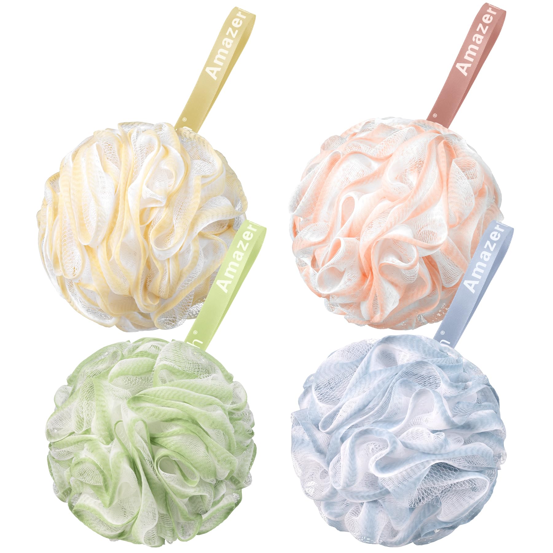 AmazerBath Loofah Sponge 60g/Piece, Exfoliating Bath Sponge Body Scrubber - Loofa Set of 4 - Cotton Candy Quartet