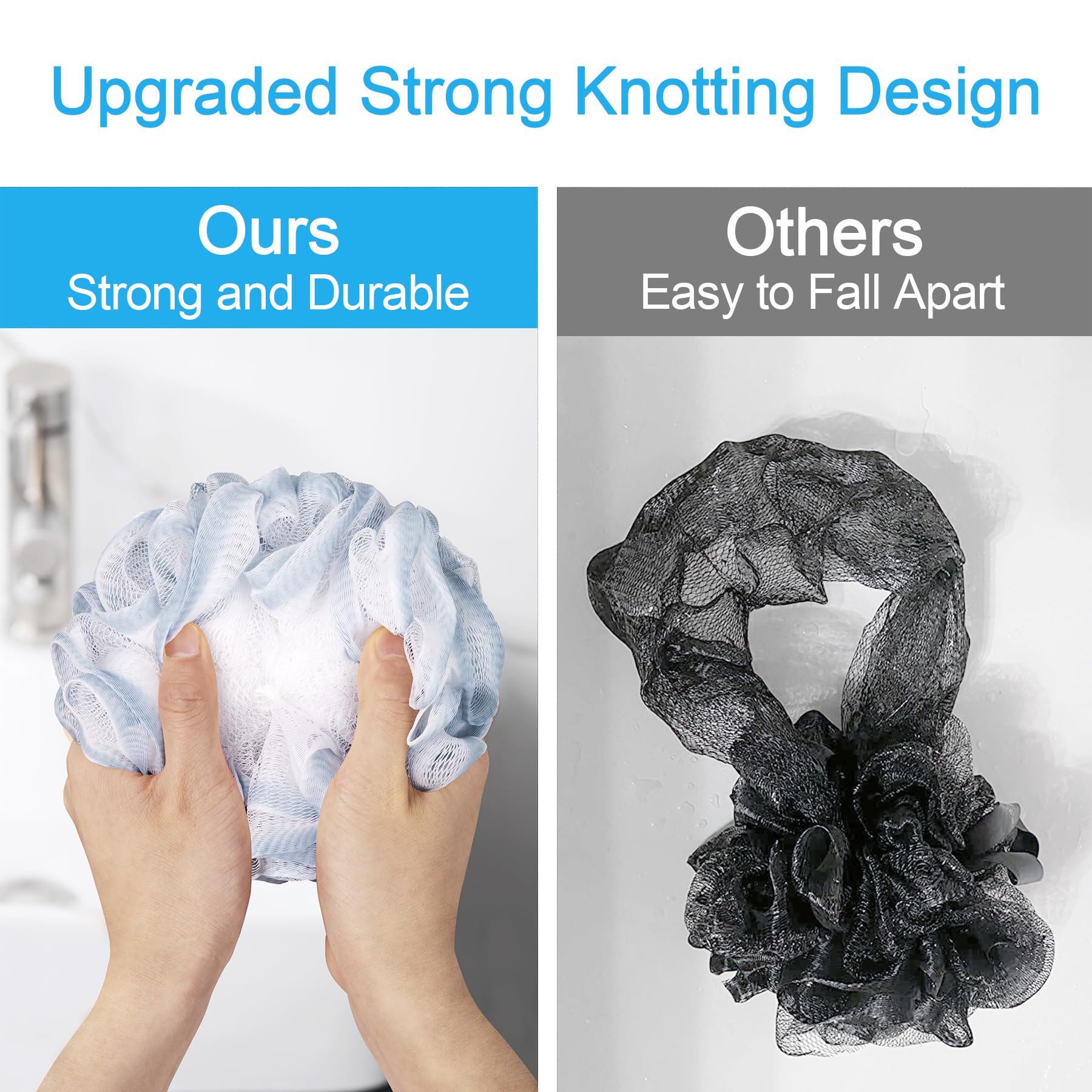 - Strong knotting design: The improved version of the loofah adopts special reinforcement and knotting technology, which greatly enhances the firmness and durability of the internal connection of the bath sponge.