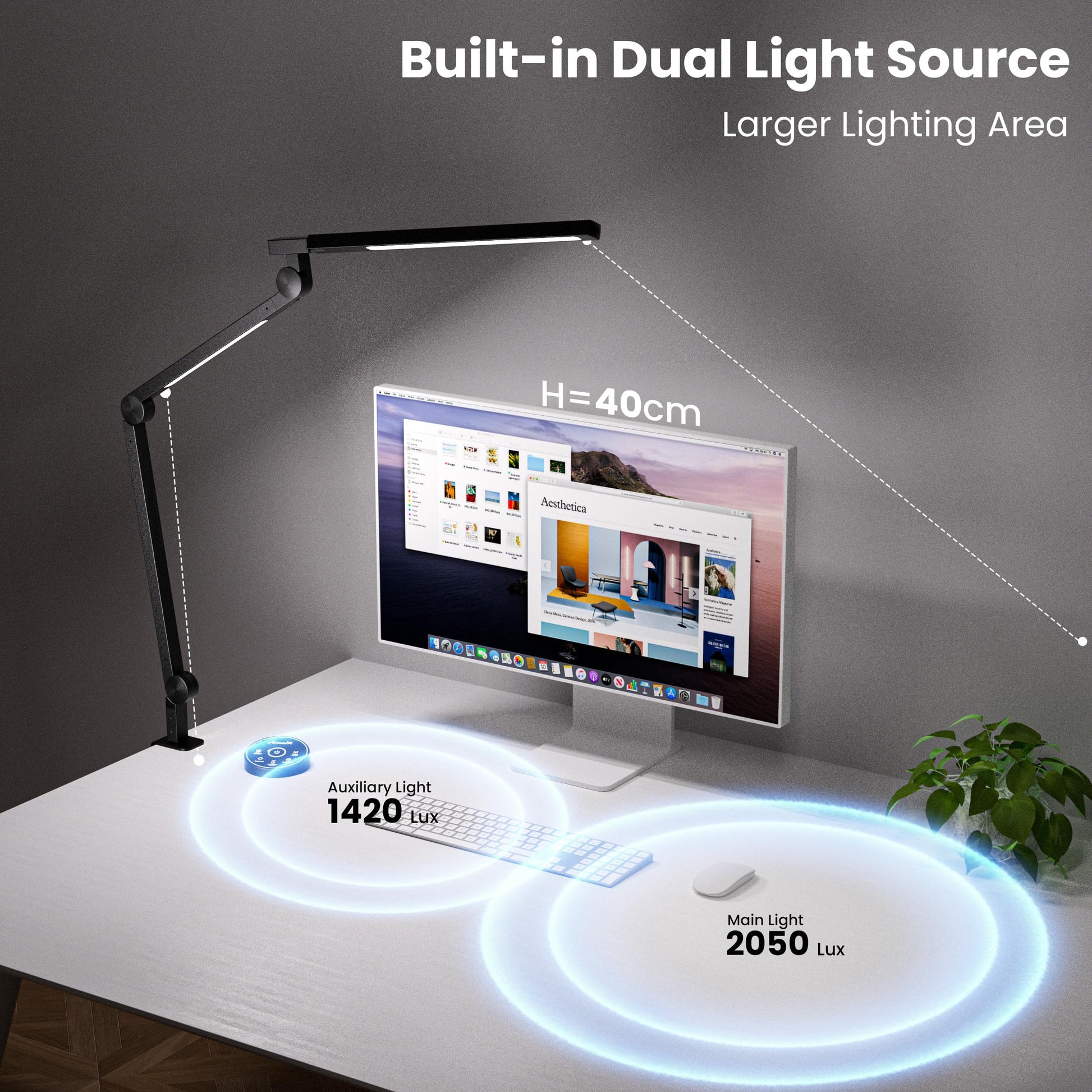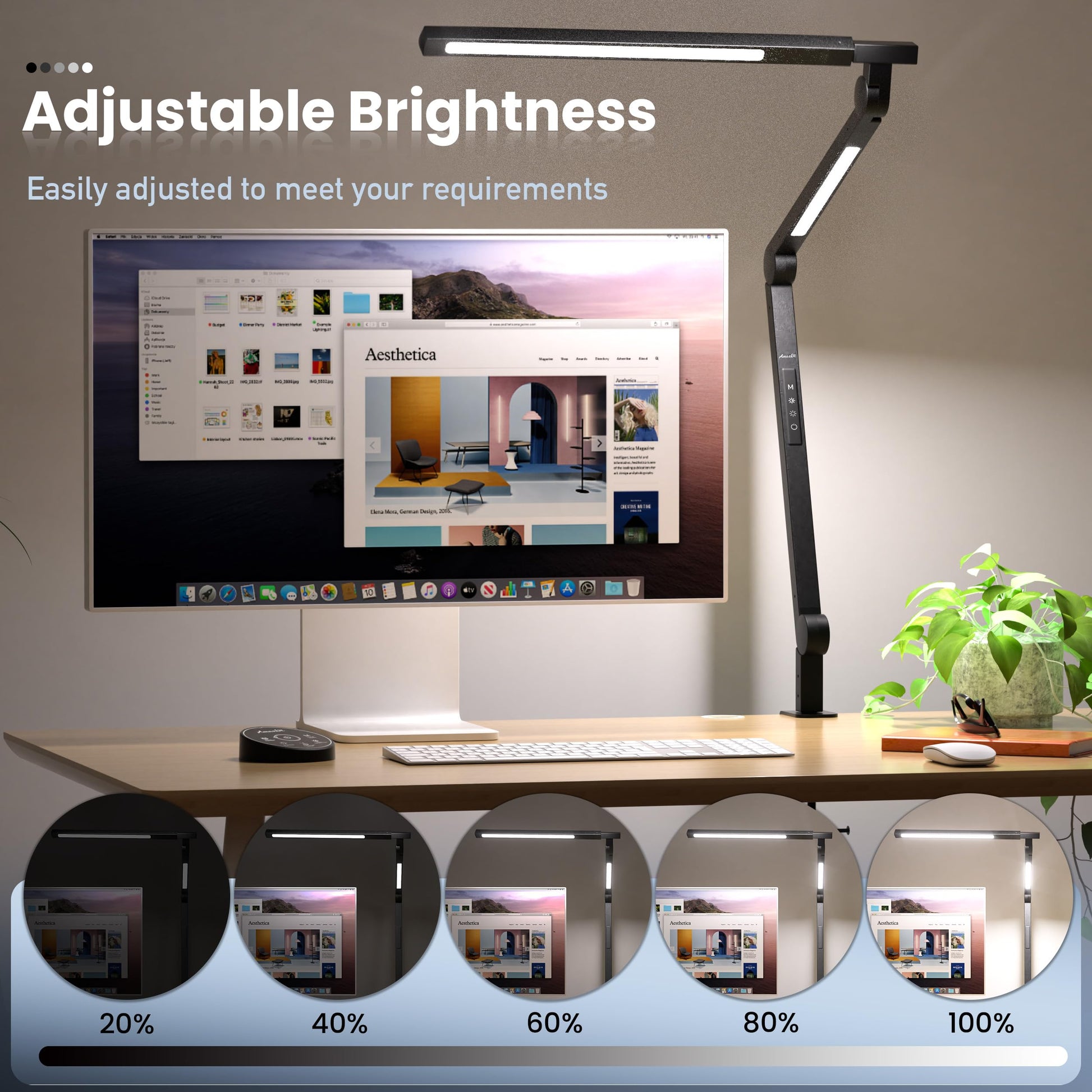 AmazLit Desk Lamp, Desk Light with Clamp, Stepless Dimming & Adjustable Color Temperature Modern Eye-Caring Architect Lamp with Memory & Timing Function for Study, Work, Home, Office, 15W