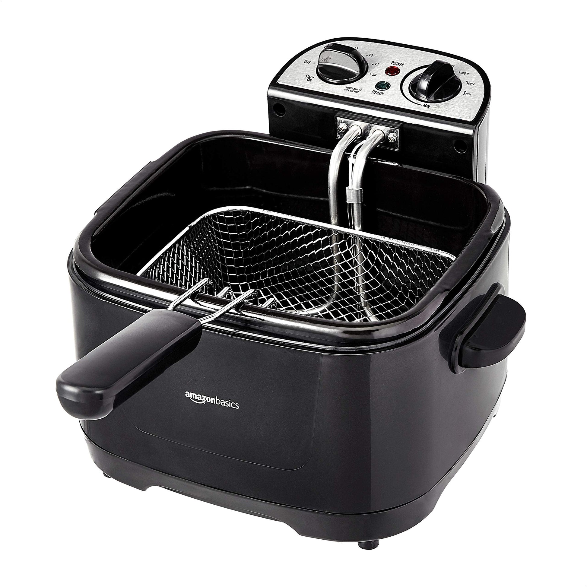 Amazon Basics 2.1-Qt (2.0L) Electric Deep Fryer with 8-Cup Oil Capacity, Timer, Adjustable Temperature, Easy Draining Basket, Viewing Window, 1500W, Black