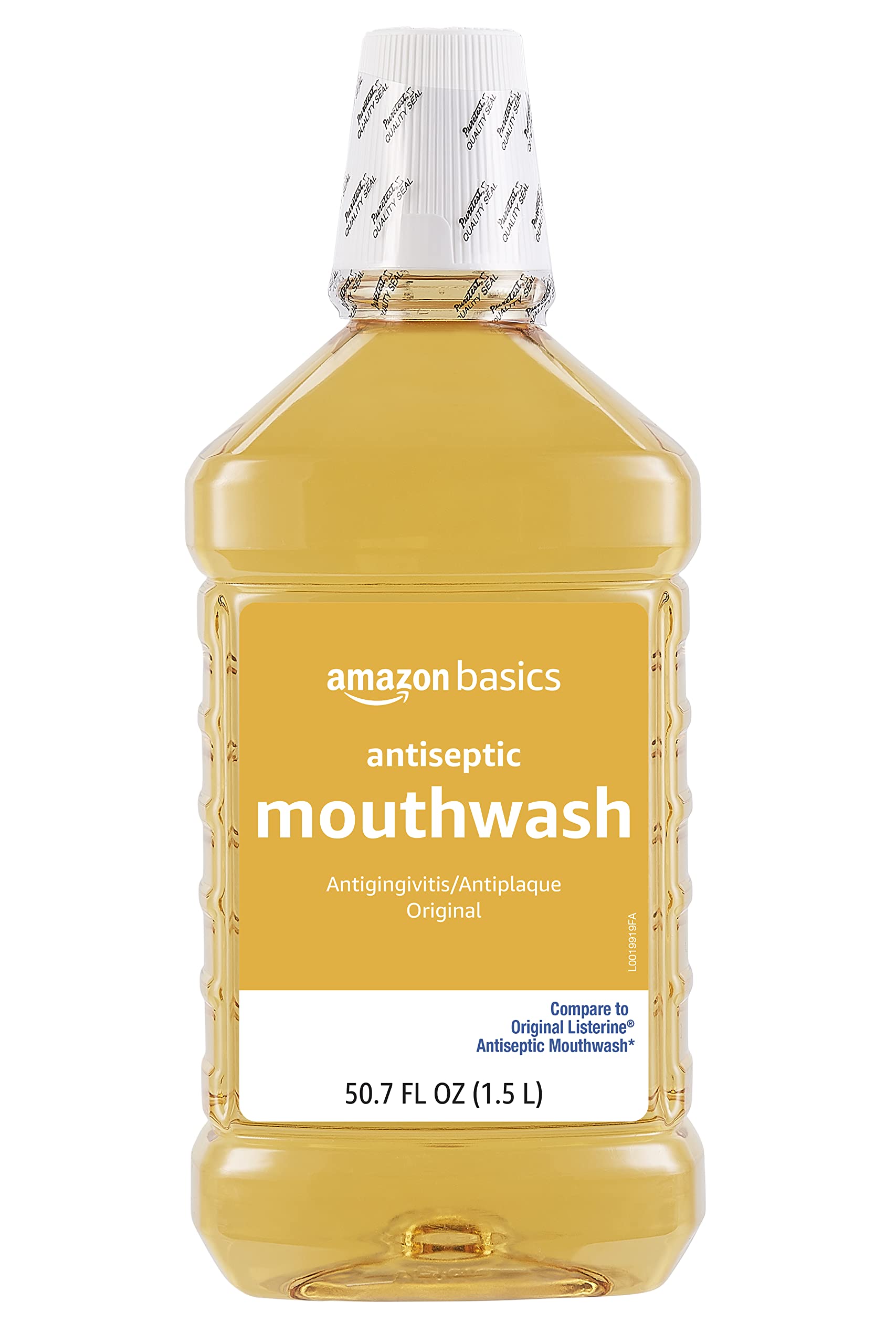 Details: Amazon Basics Original Flavor Antiseptic Mouthwash helps you support your oral health as part of your daily mouth care routine. Each pack includes one 1.5-liter bottle, providing a long-lasting supply of original flavor mouthwash that helps fight germs and reduce plaque that can lead to gingivitis. Our antiseptic mouthwash is made without fluoride, making it a suitable choice for those who prefer to use a mouthwash without fluoride. Include this mouth wash in your oral care routine in the morning and at night