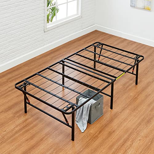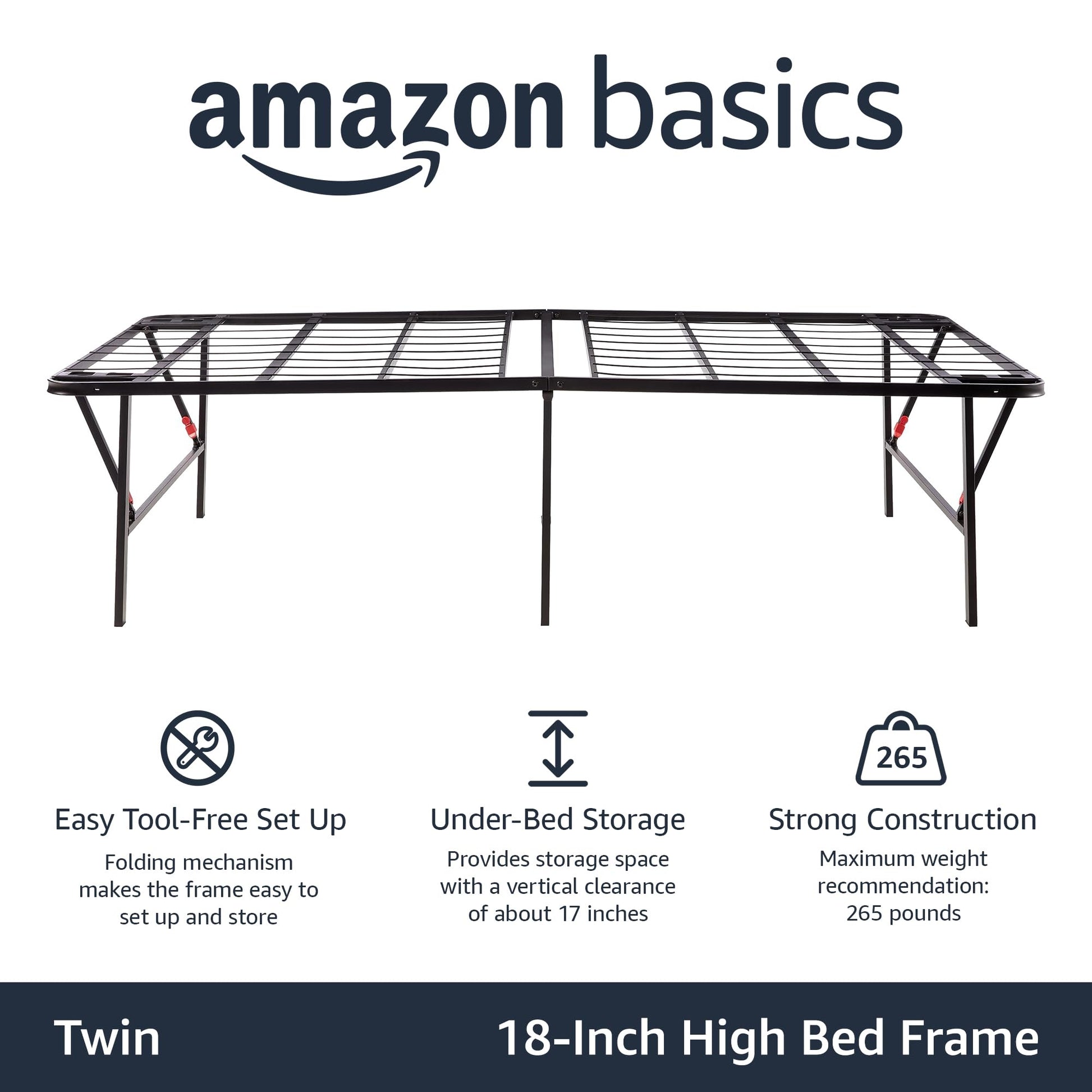Amazon Basics Bed Frame with Storage, Foldable Metal Platform, Sturdy Steel, No Box Spring Needed, 18 inches High, Tool-Free Setup, Twin Size, Black