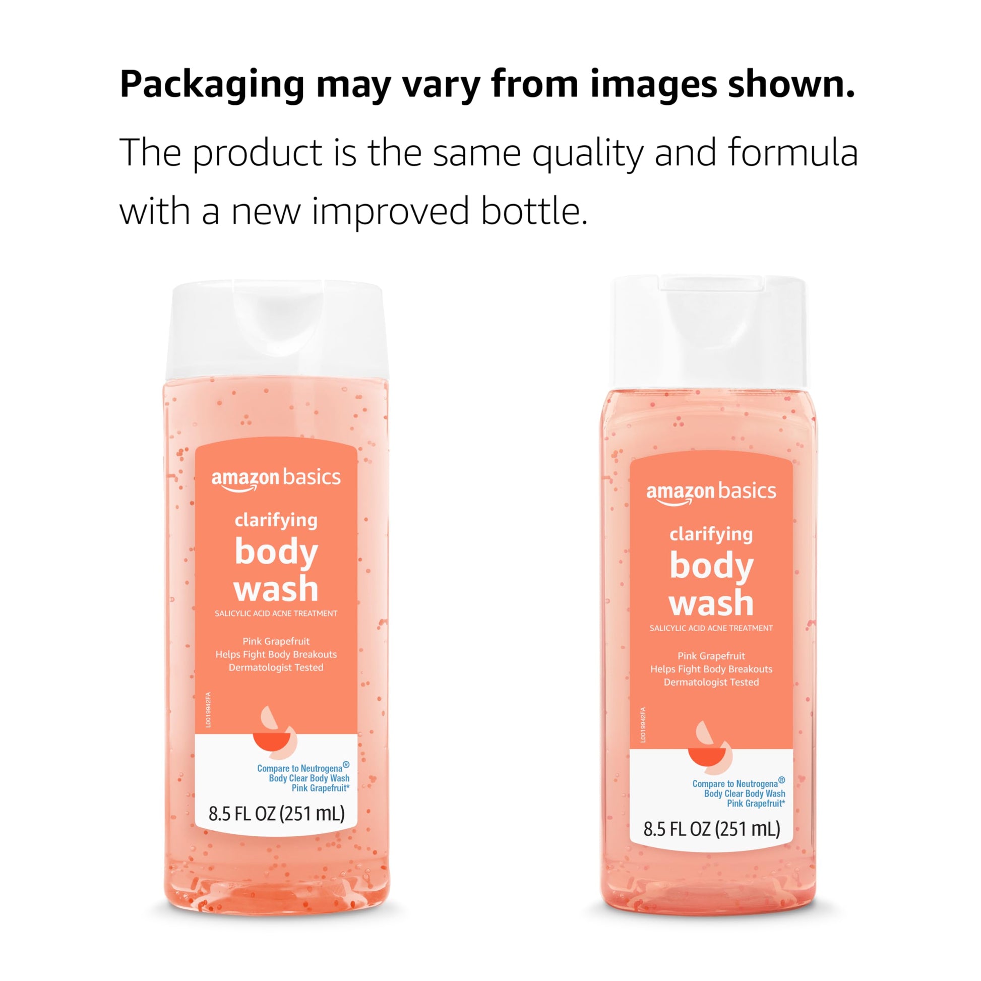 Amazon Basics Clarifying Pink Grapefruit Body Wash, 2% Salicylic Acid Acne Treatment, Dermatologist Tested, 8.5 Fluid Ounces, Pack of 1