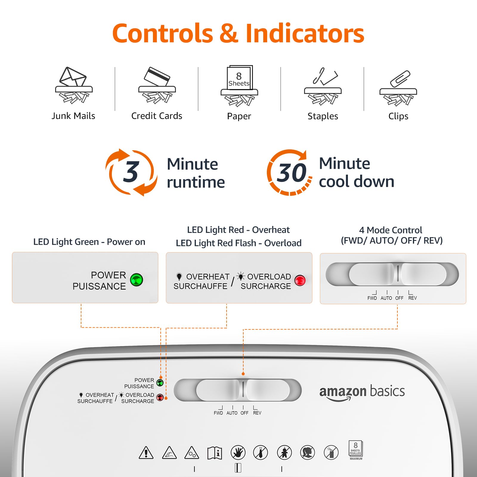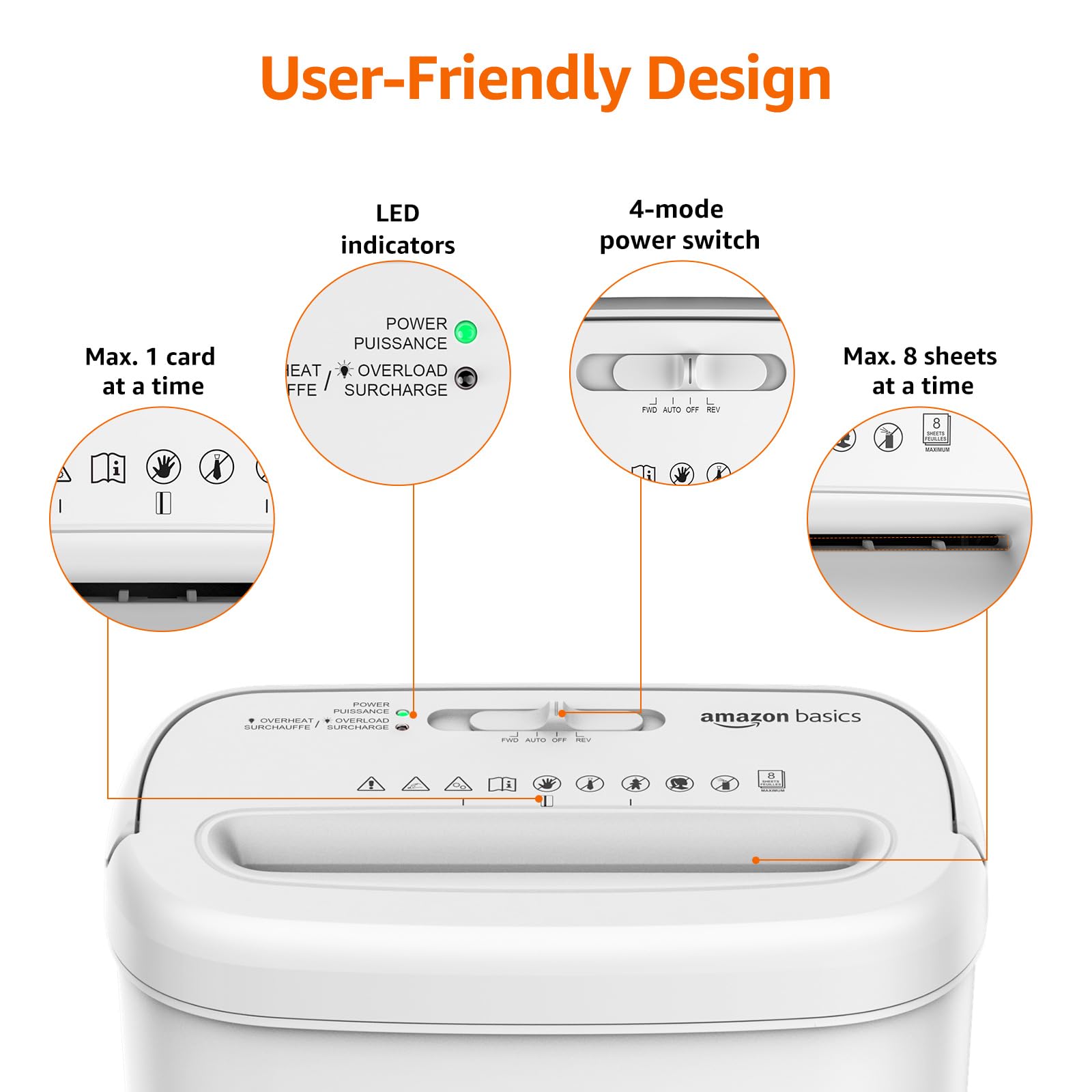 Amazon Basics Cross Cut Paper and Credit Card Shredder for Security - 8-Sheet, Heavy Duty, White