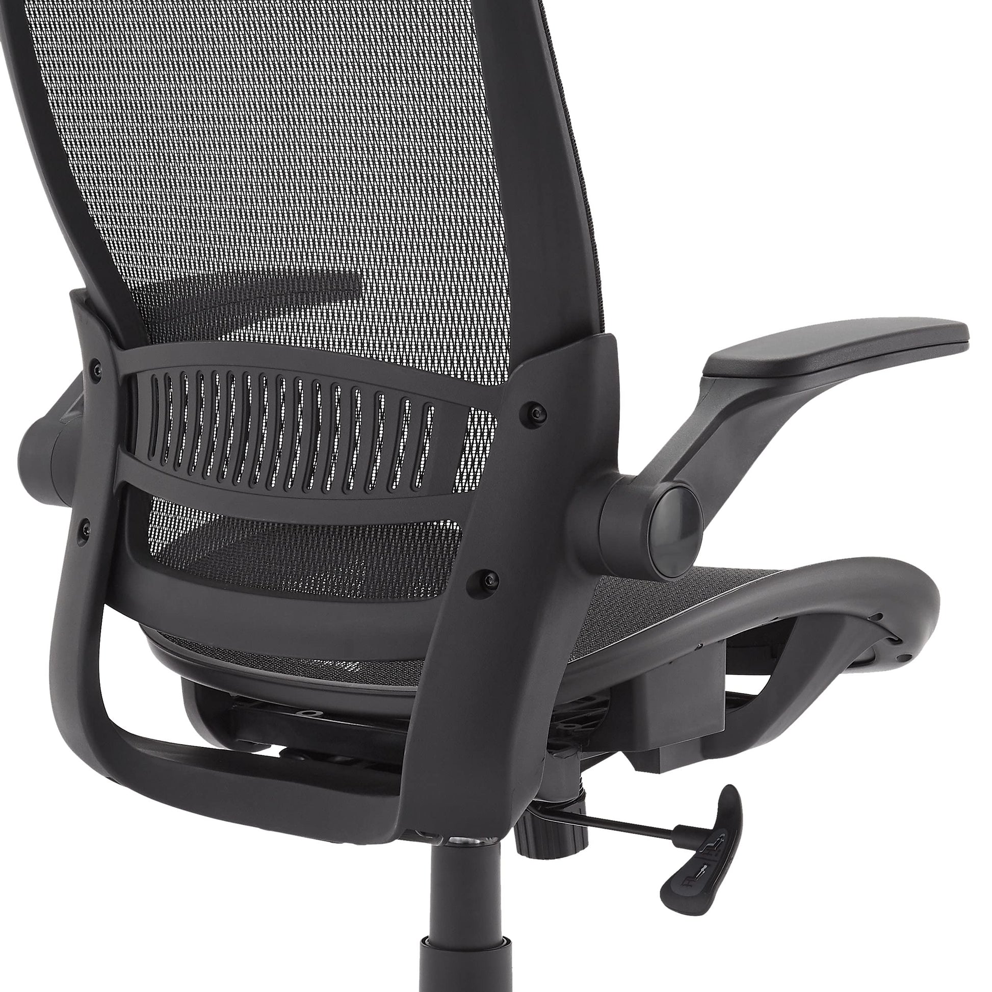 Amazon Basics Ergonomic High-Back Desk Chair, Comfortable Flip-Up Armrests, Contoured Mesh Seat, Swivel, Black, 25.5"D x 26.25"W x 49.25"H