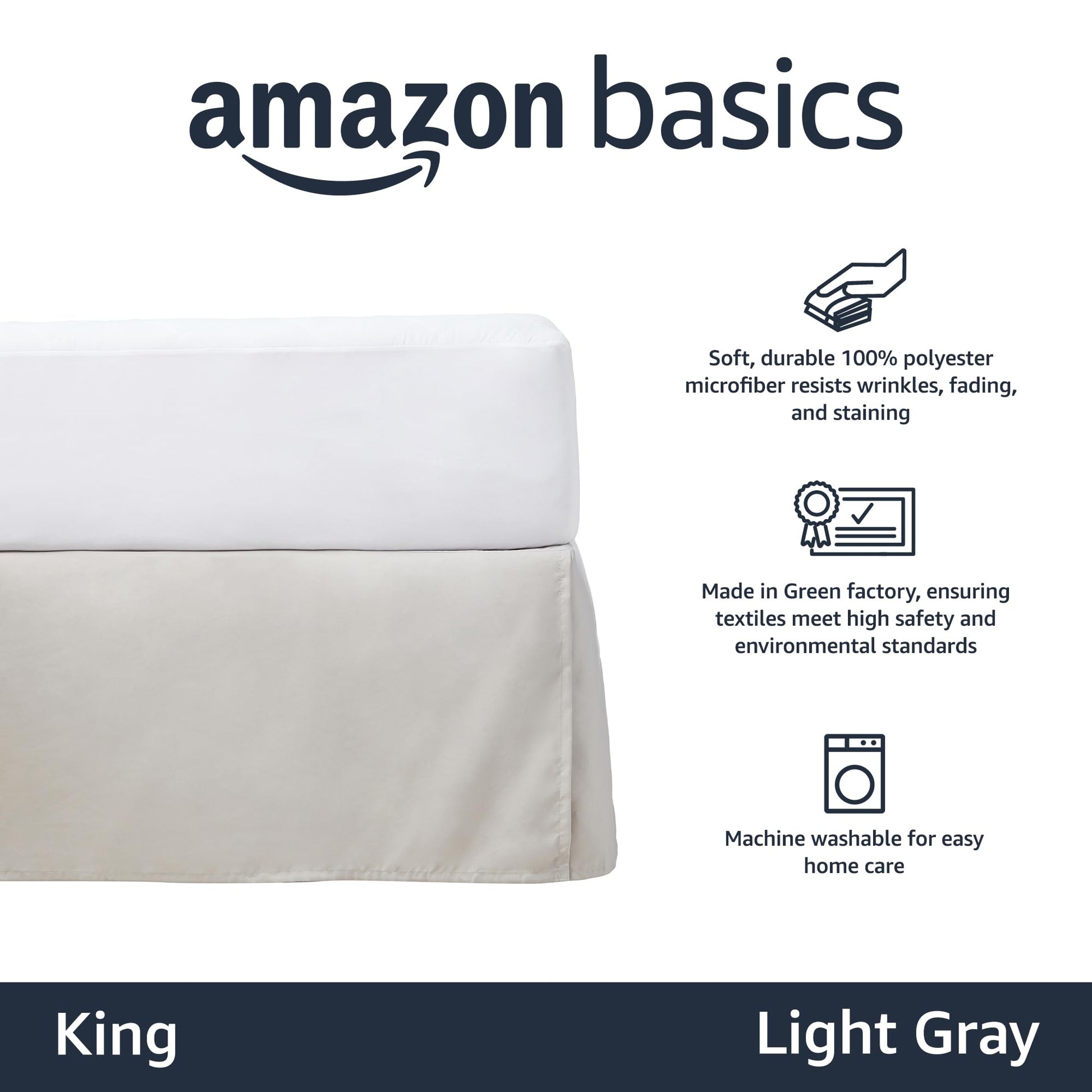 Amazon Basics Lightweight Pleated King Size Bed Skirt, Fade Resistant, Machine Washable, King, Light Grey, Solid