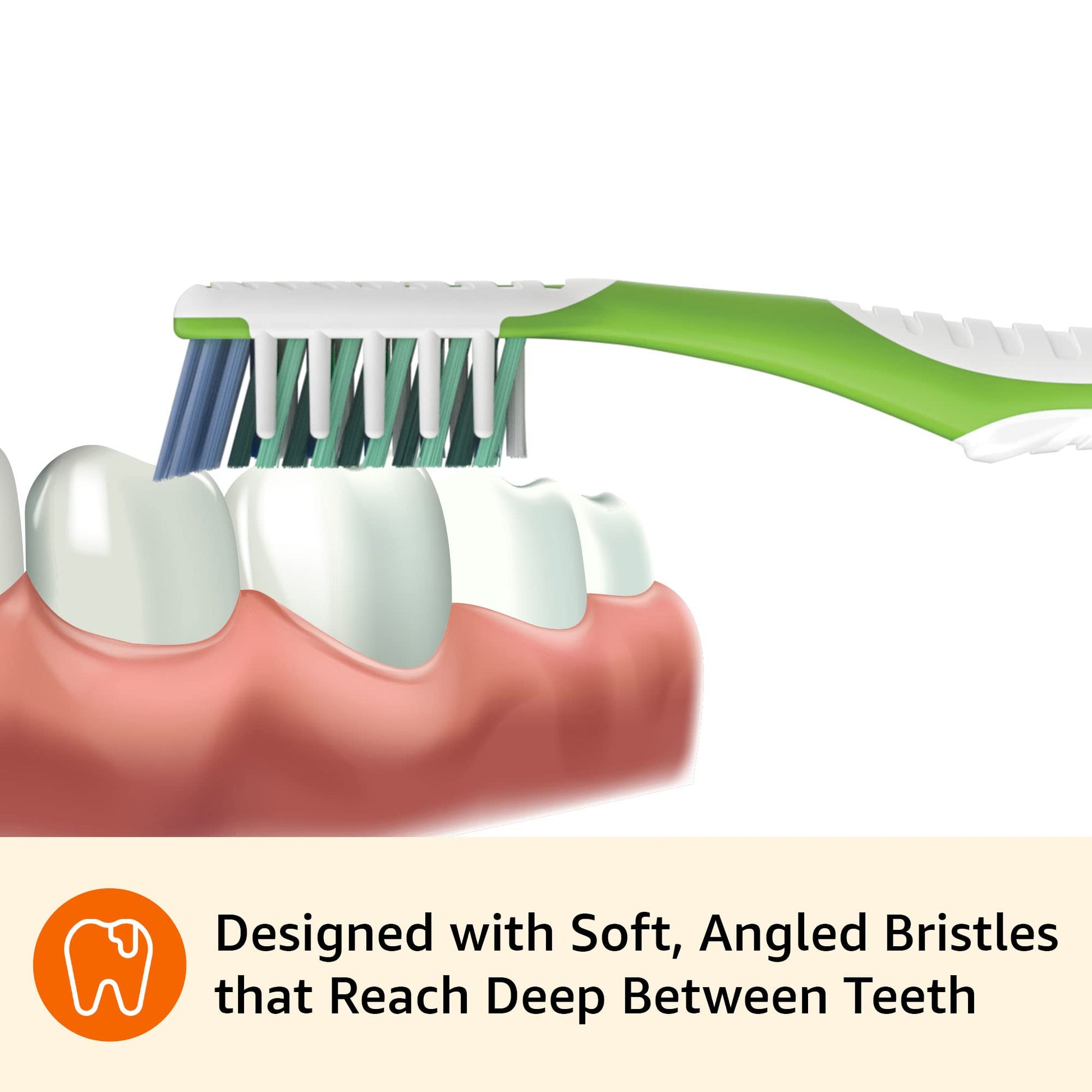 - Green bristles fade with use as a reminder to replace toothbrush