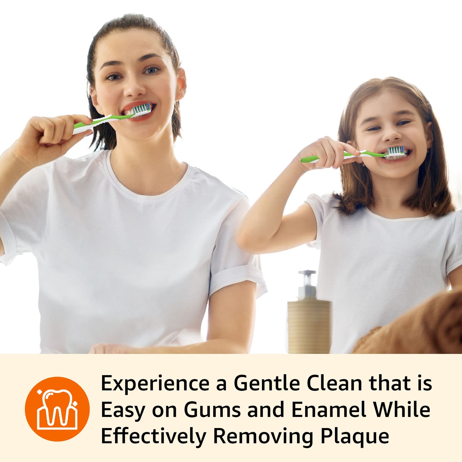 - Gentle on enamel and gums; cleans along the gum line