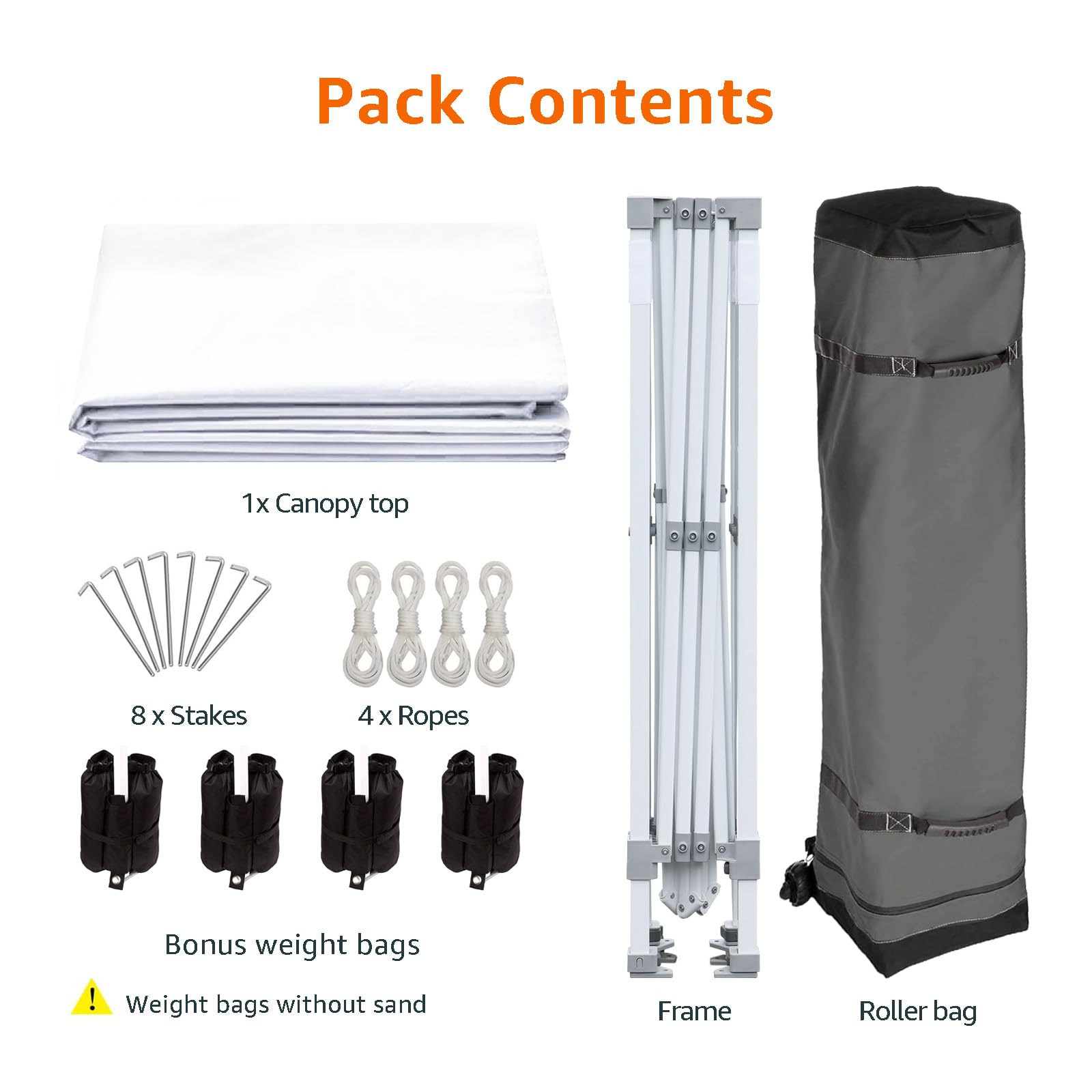 Amazon Basics Outdoor Pop Up 10 x 10 Canopy Tent for Events, Portable with Easy Setup, Includes Wheeled Carry Bag, 8 Pegs, 4 Ropes, 4 Weighted Bags, White