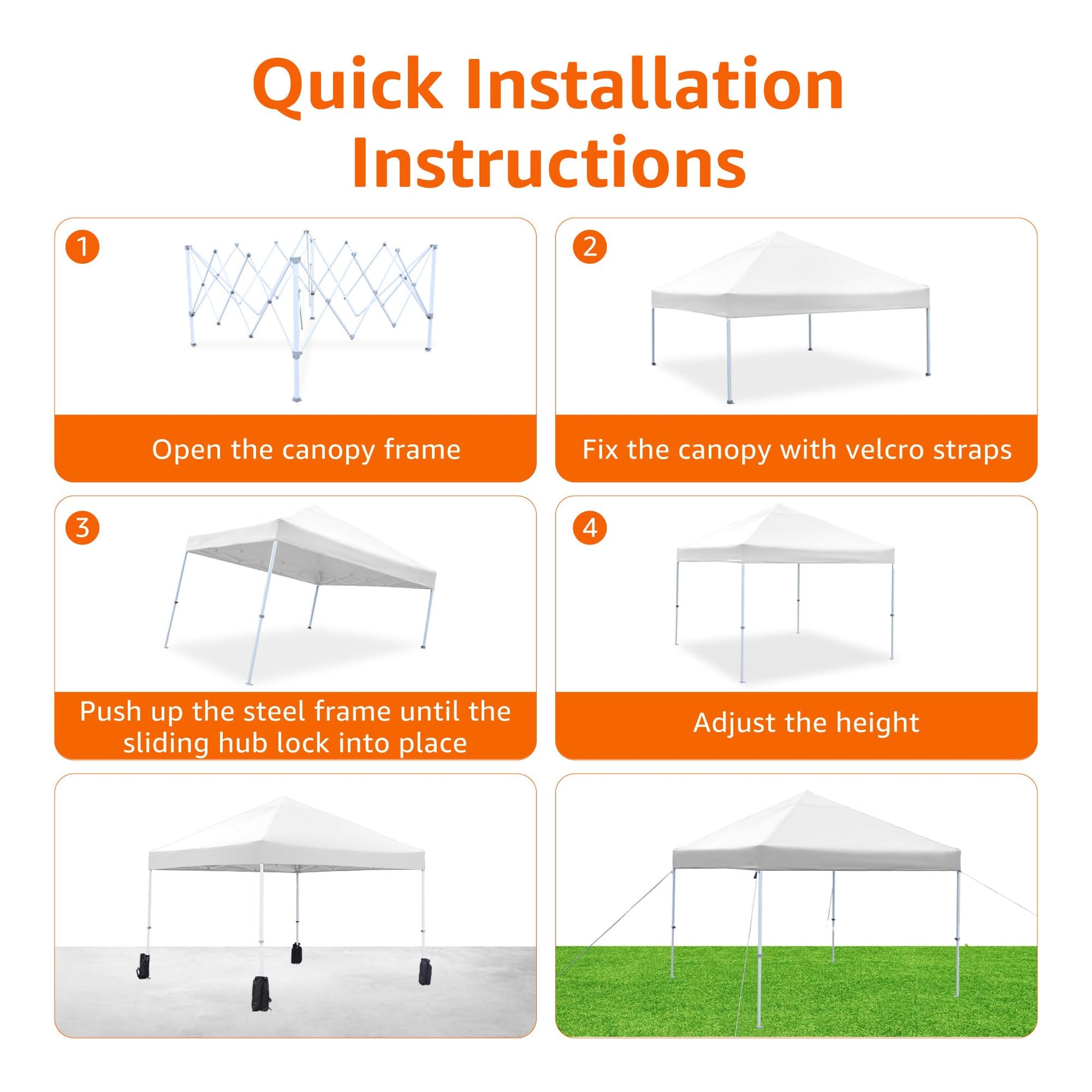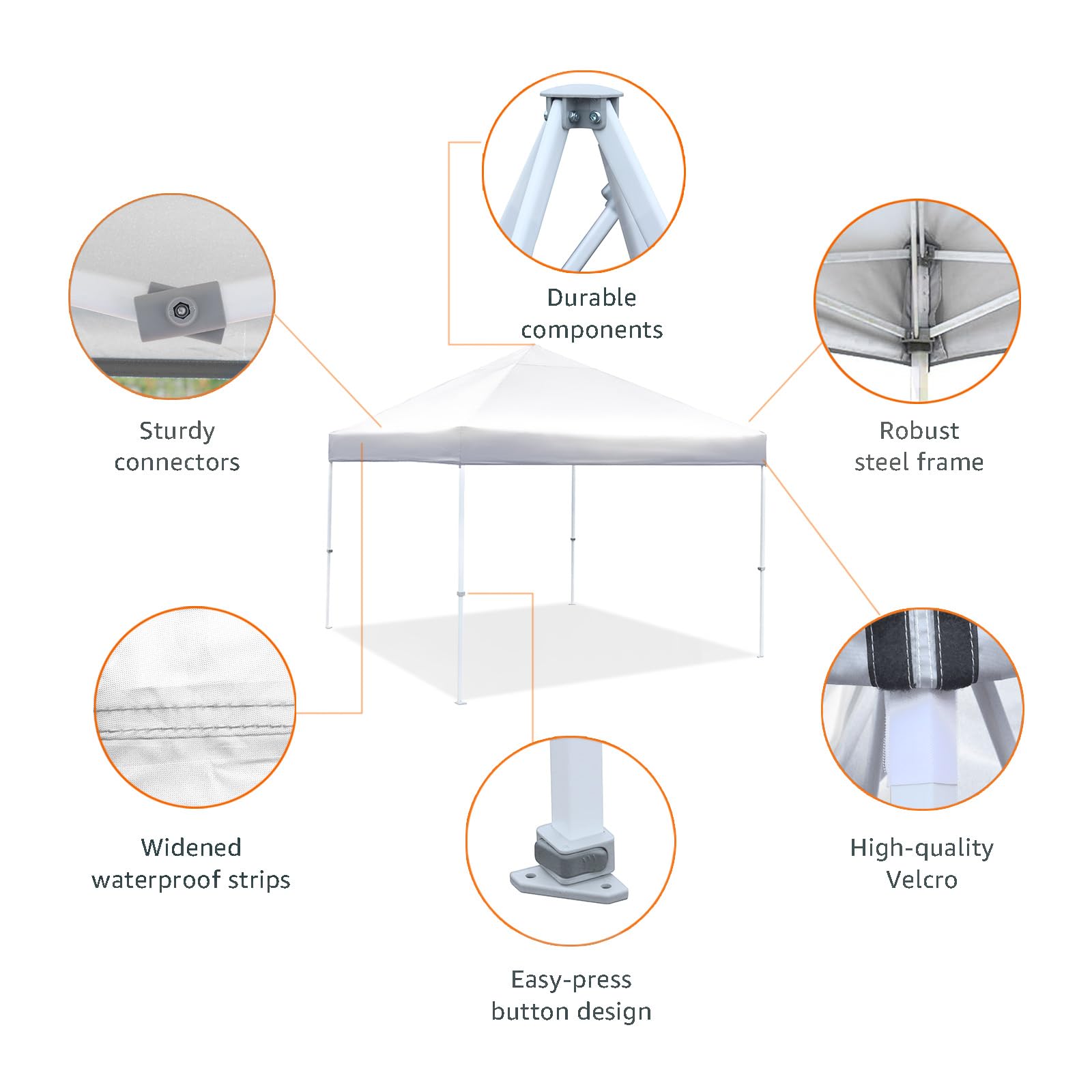 - WHITE POP-UP CANOPY: Ideal for family gatherings, sporting events, picnics, and other outdoor gatherings