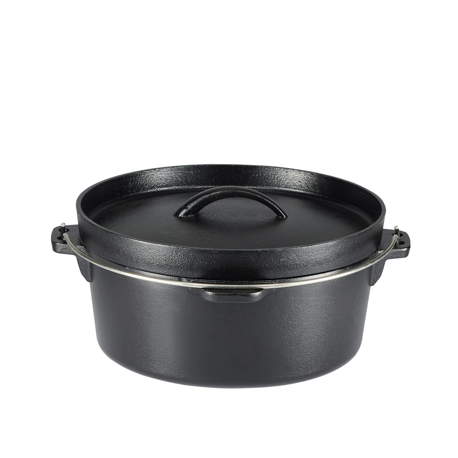 - Cast iron for even heat distribution and retention; pre-seasoned products don't have non-stick function