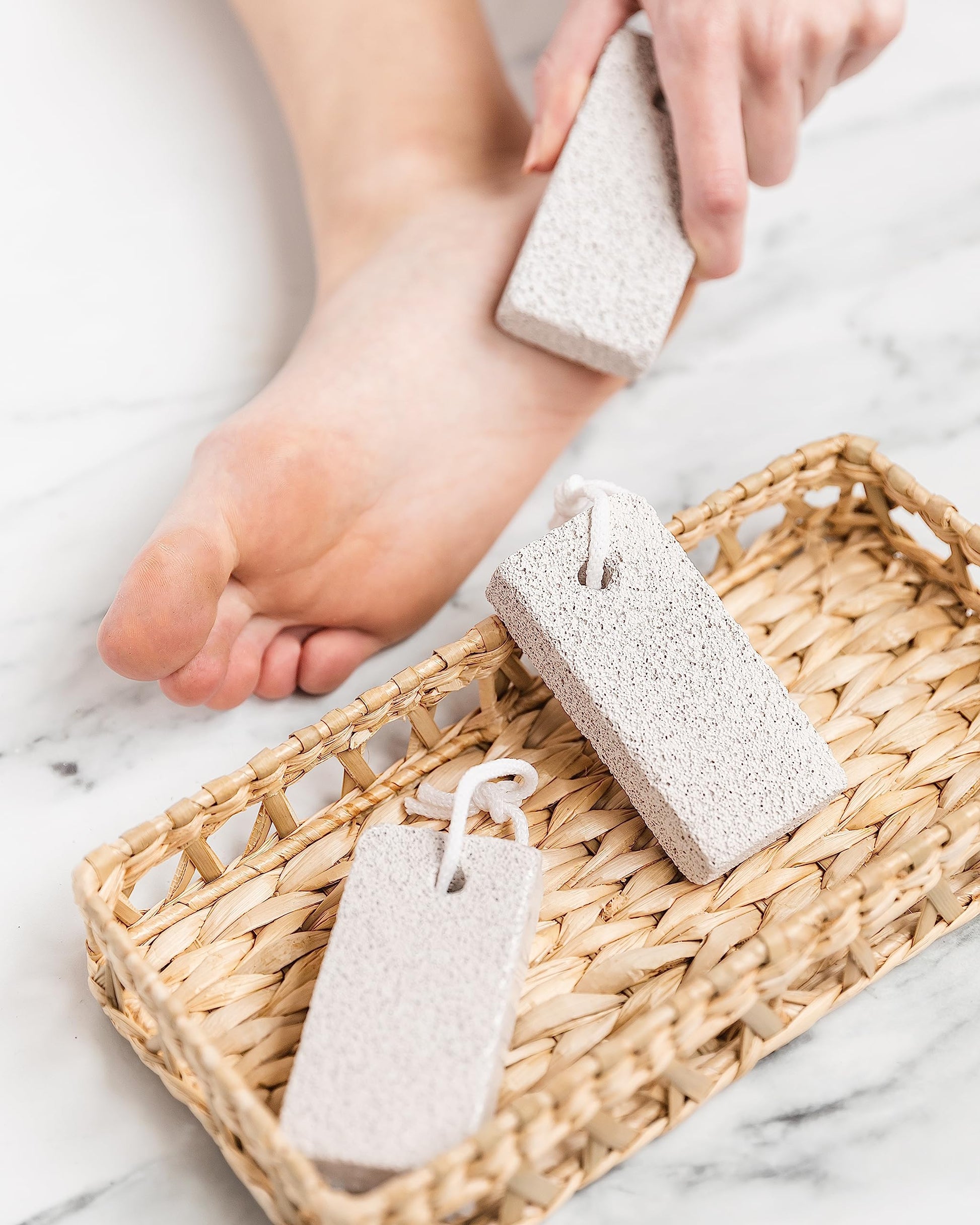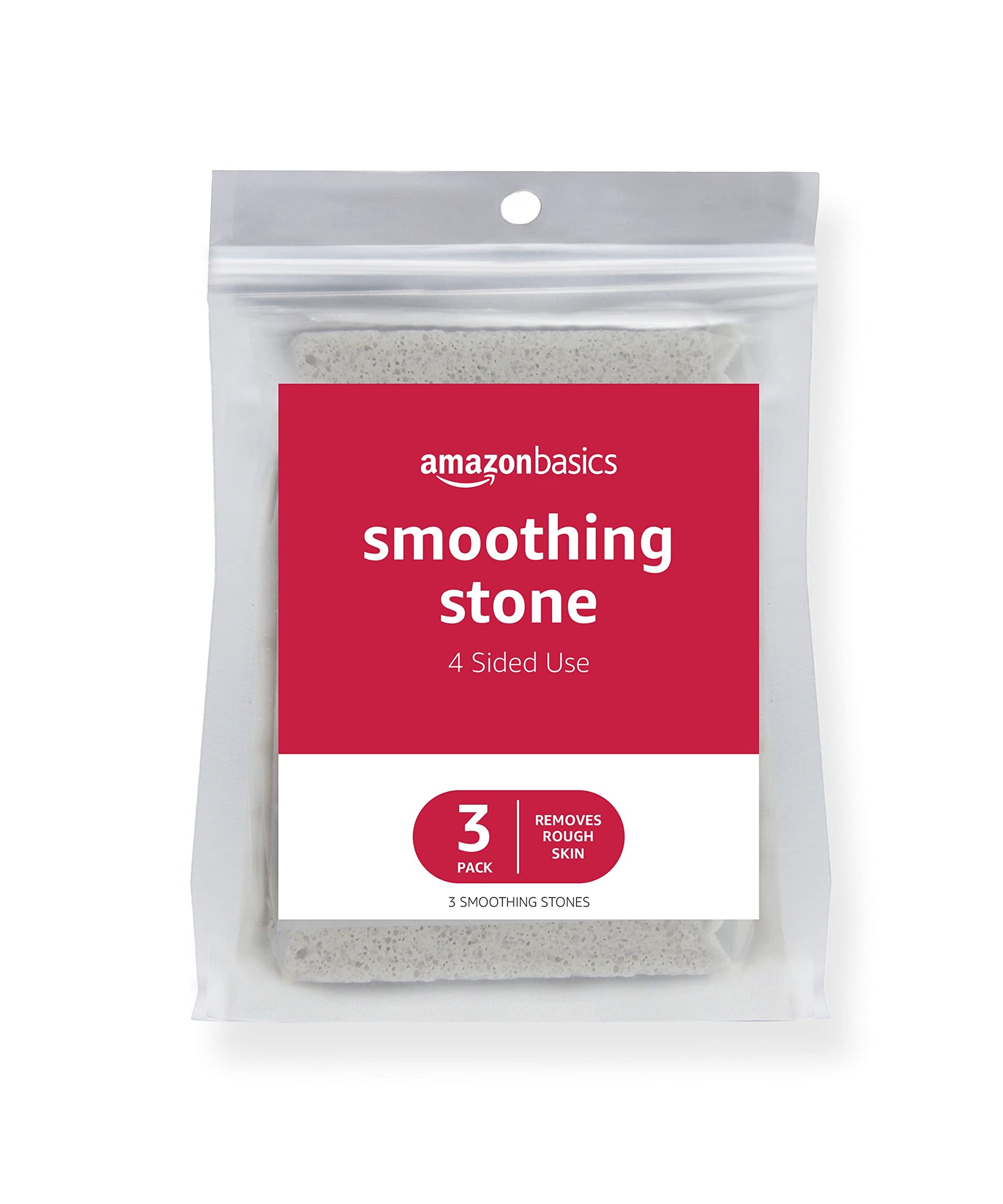 Details: Amazon Basics Smoothing Stone 3-Pack, Medium coarse smoothing stone gently exfoliates dead skin and smooths rough heels, Hangs for easy drying and storage, Rinses clean