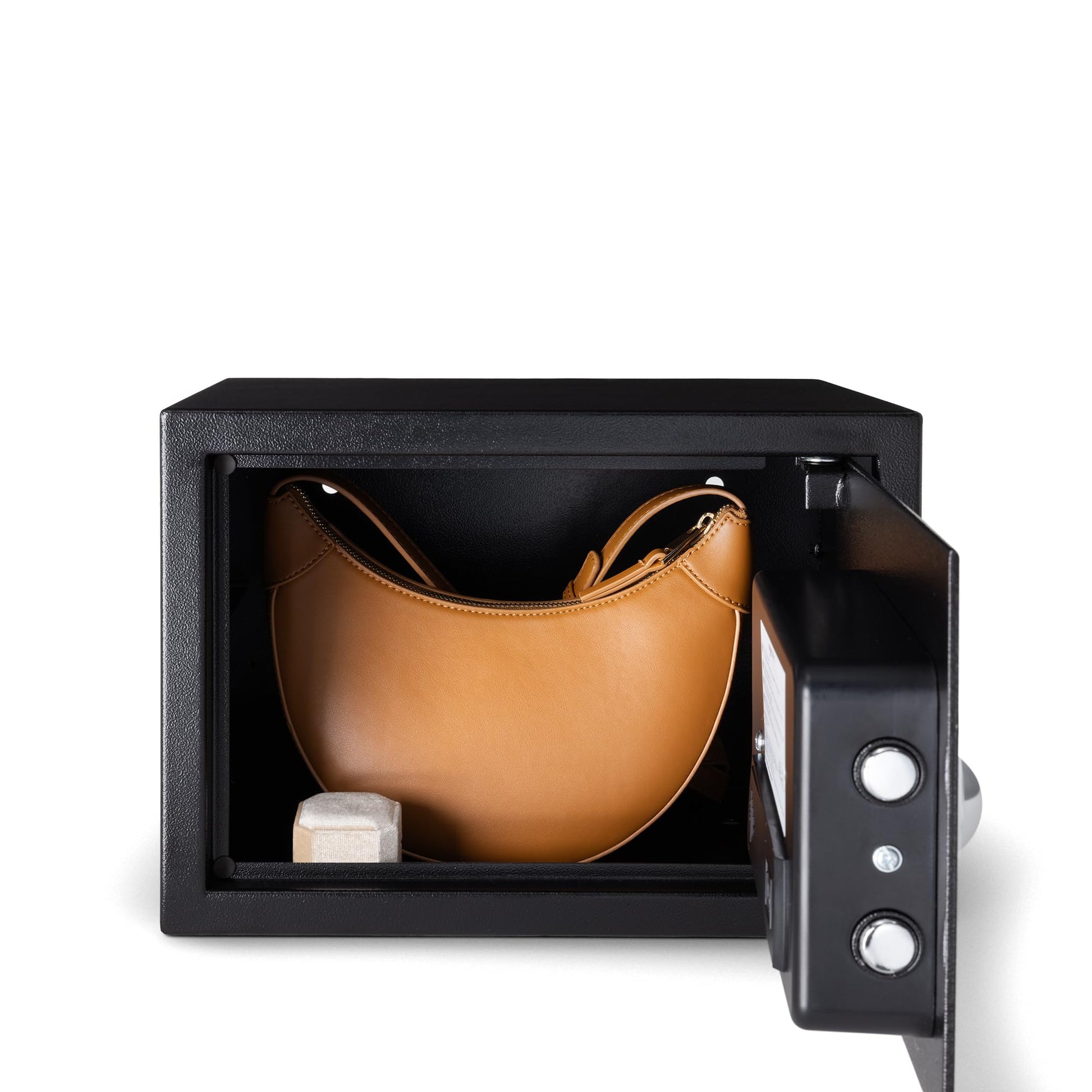 - 0.5-cubic-feet security safe with electronic lock and 3 operation indicator lights; powered by (4) AA batteries (not included)