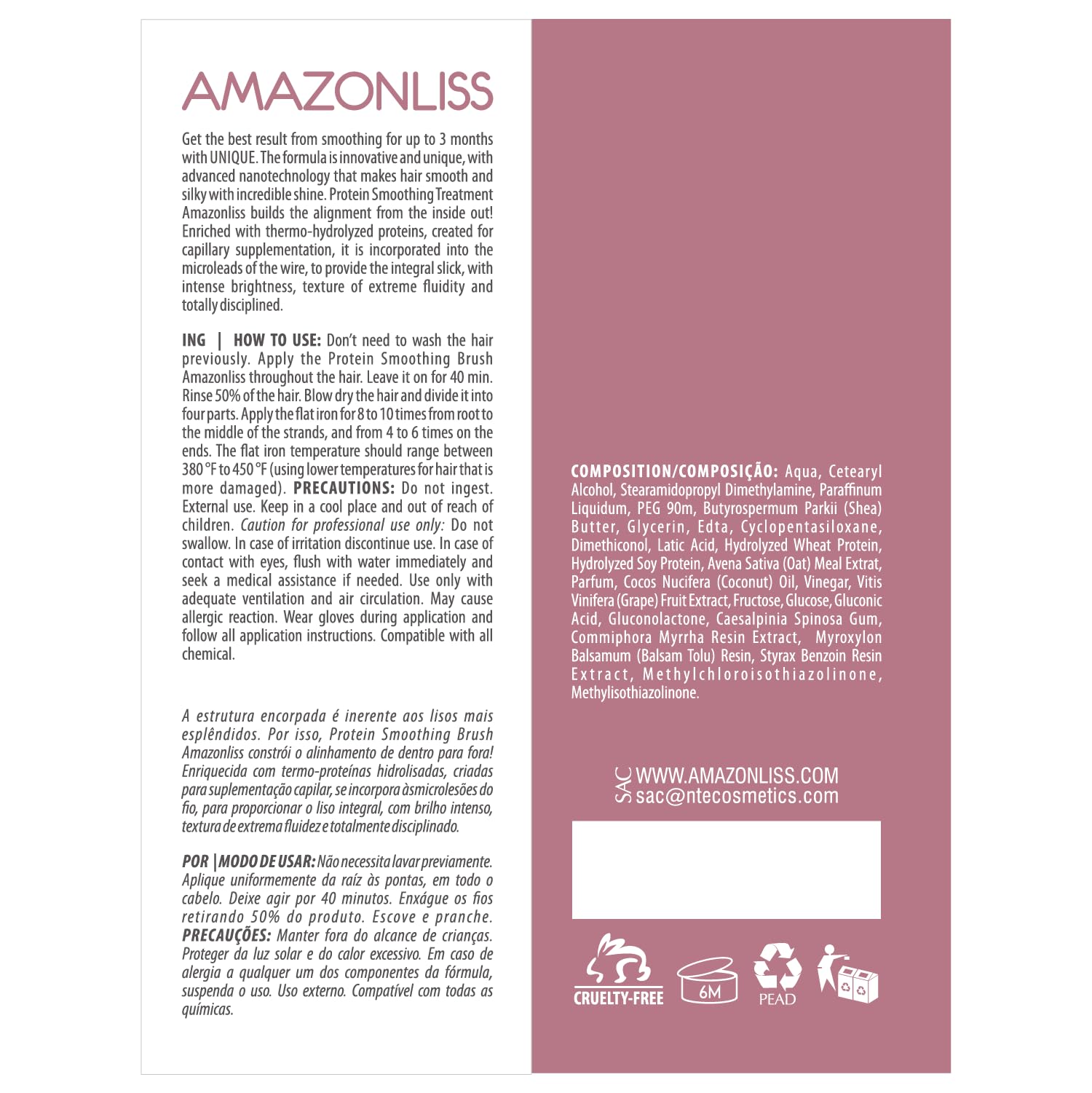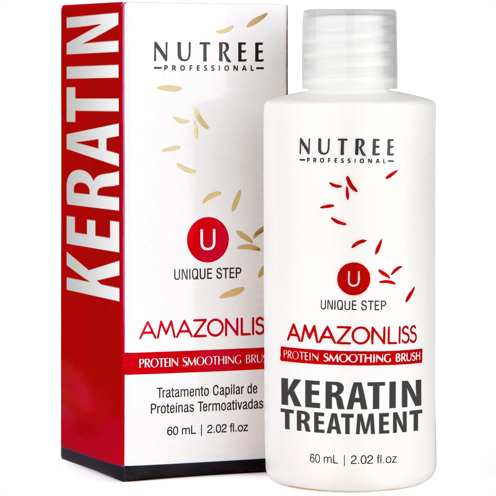 - FROM BRAZIL WITH LOVE! OUR UNIQUE FORMULA INCLUDES WHEAT, SOY, CORN, RICE PROTEINS, AÇAI BERRIES, AND VITAMINS B5 AND B3. Our ingredients are specially chosen to enhance the action of keratin and provide additional hydration, revitalization, and regeneration. It’s here, in Brazil, that this popular salon treatment was developed. Now, the benefits of keratin straightening have become famous around the world. It’s time to say no to pesky split ends and brittle fly aways!