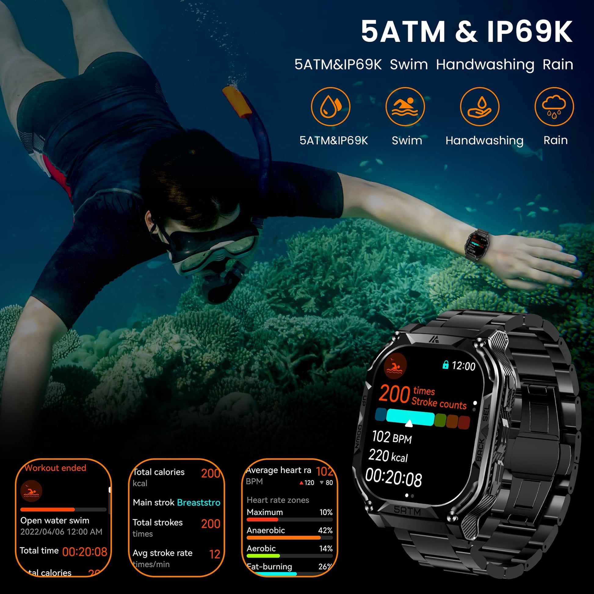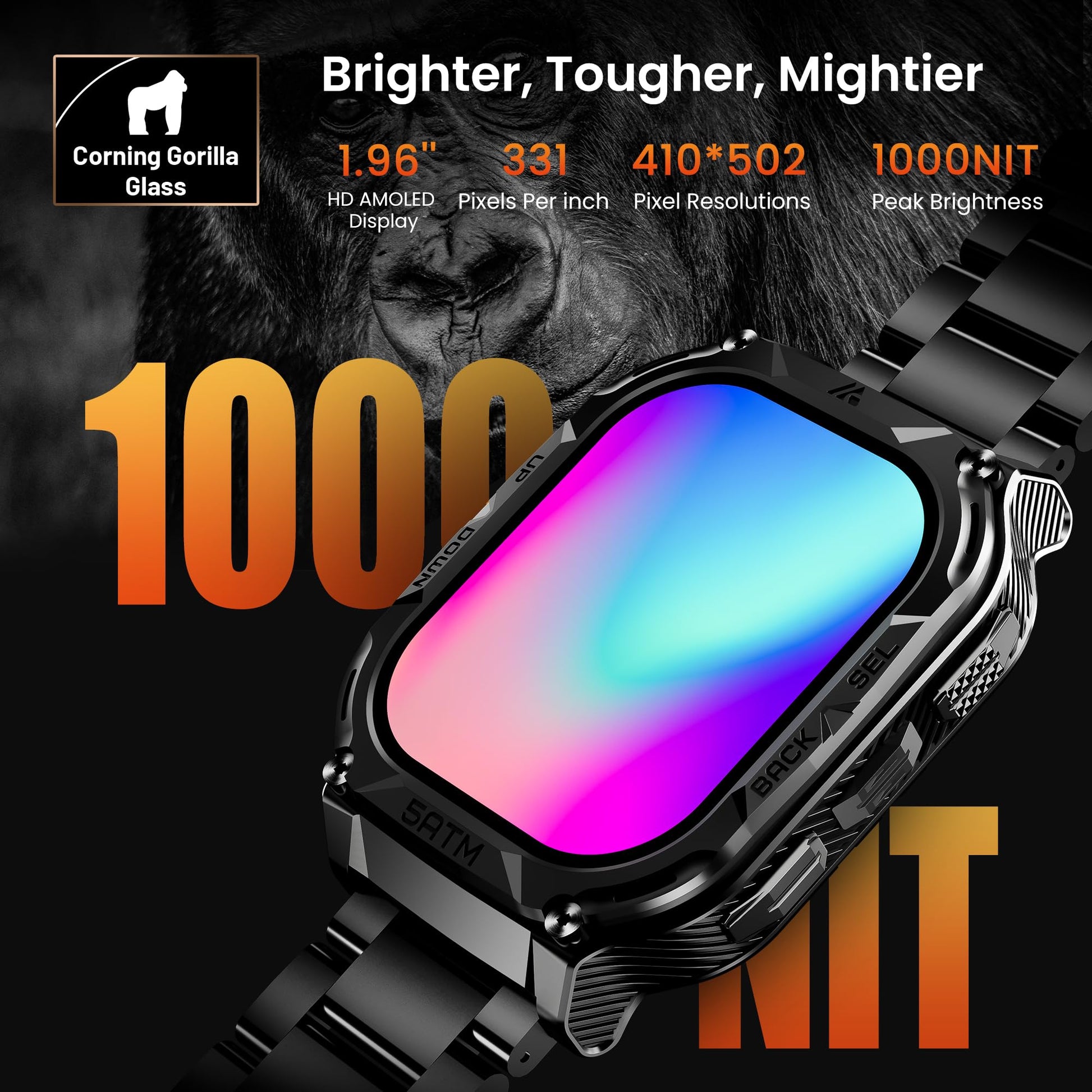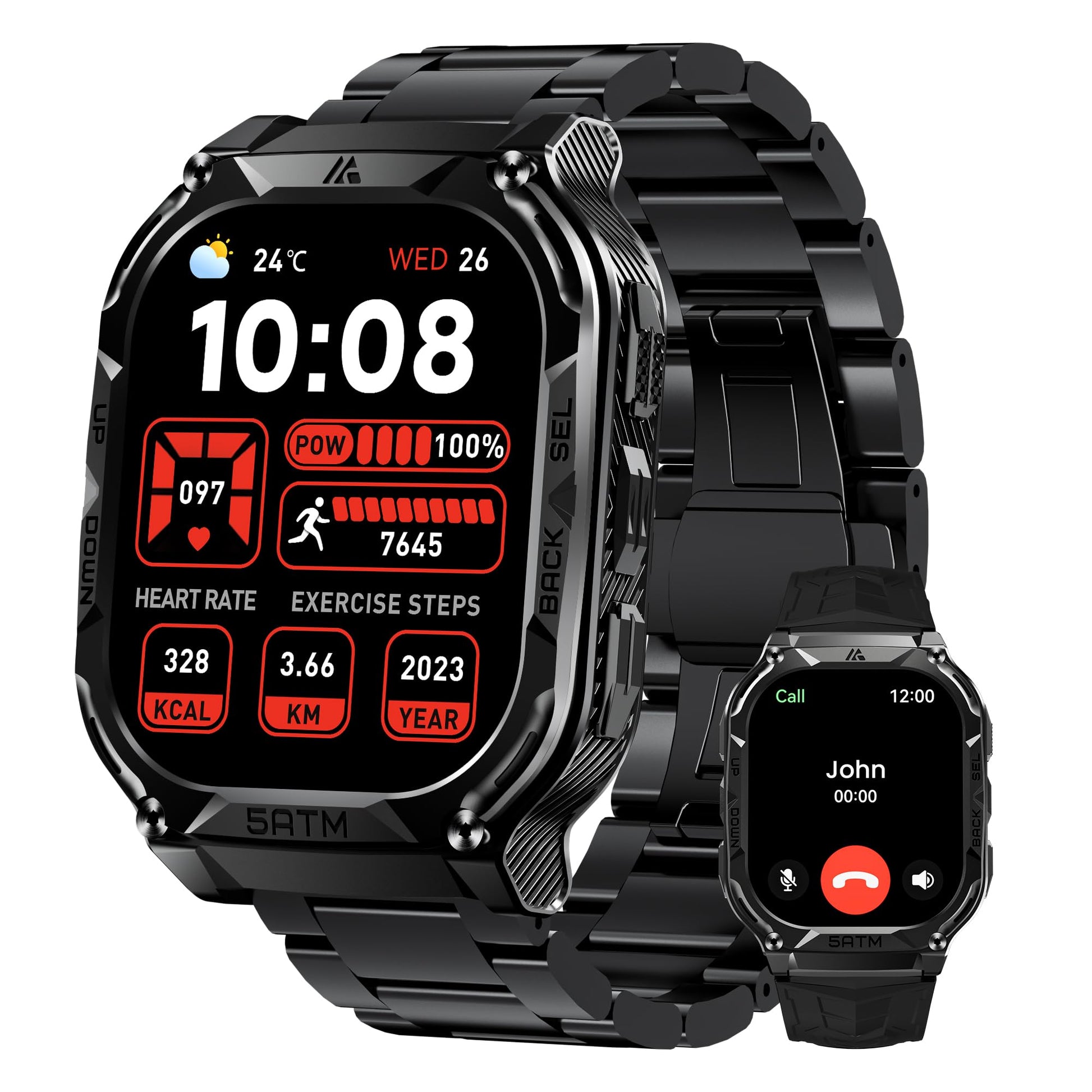 - ⌚MILITARY GRADE STANDARD(MIL-STD-810H) STAINLESS STEEL BODY - AMAZTIM M3E smart watch features Corning Gorilla screen, Mohs hardness up to 9H, it's strong enough to deal with a range of screen-destroying behaviors. Military-grade Stainless Steel materials make it indestructible and most durable. Successfully passed 15 military tests of the highest military toughness standard (MIL-STD-810H), including salt spray, rain, impact, etc. It can easily face any harsh environment.