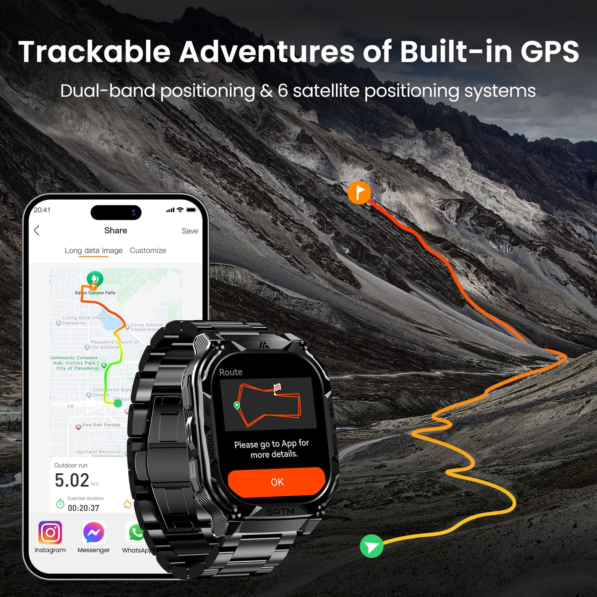 - ⌚BUILT-IN GPS & 6 SATELLITE POSITIONING SYSTEMS - AMAZTIM M3E smart watches for men Built-in GPS, The military-grade dual-band and 6-satellite system allows fast positioning in (8-45 seconds), 2-3 times faster than normal single-band 4 satellite positioning smartwatches, The tracker watch also includes an internal compass, altitude pressurization, and altimeter sensors that show your current position, altitude, and air pressure.