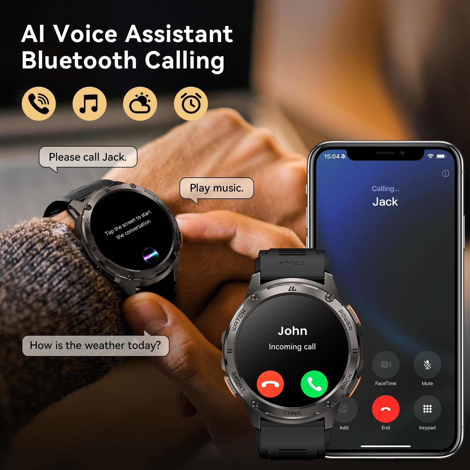 - ⌚Answer/Make Calls & AI Voice Assistan - A very handy tool built in the Bluetooth watch. Use your voice to give instructions and the voice assistant will do the rest. You can ask questions, play your desired music, and check weather, set alarms and timers. You can also make voice calls through the voice assistant, makes the scenes that are inconvenient to hold a mobile phone (For example: driving) in daily exercise and life more concise and smart.