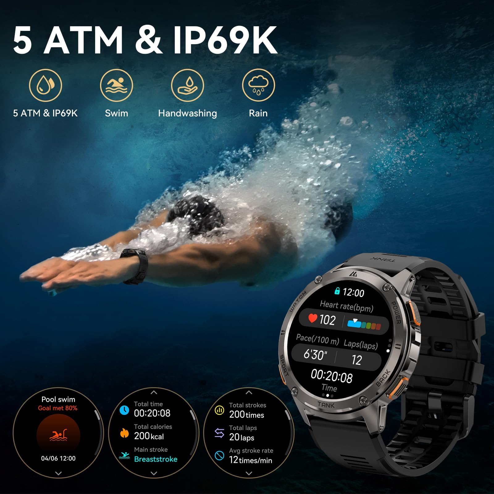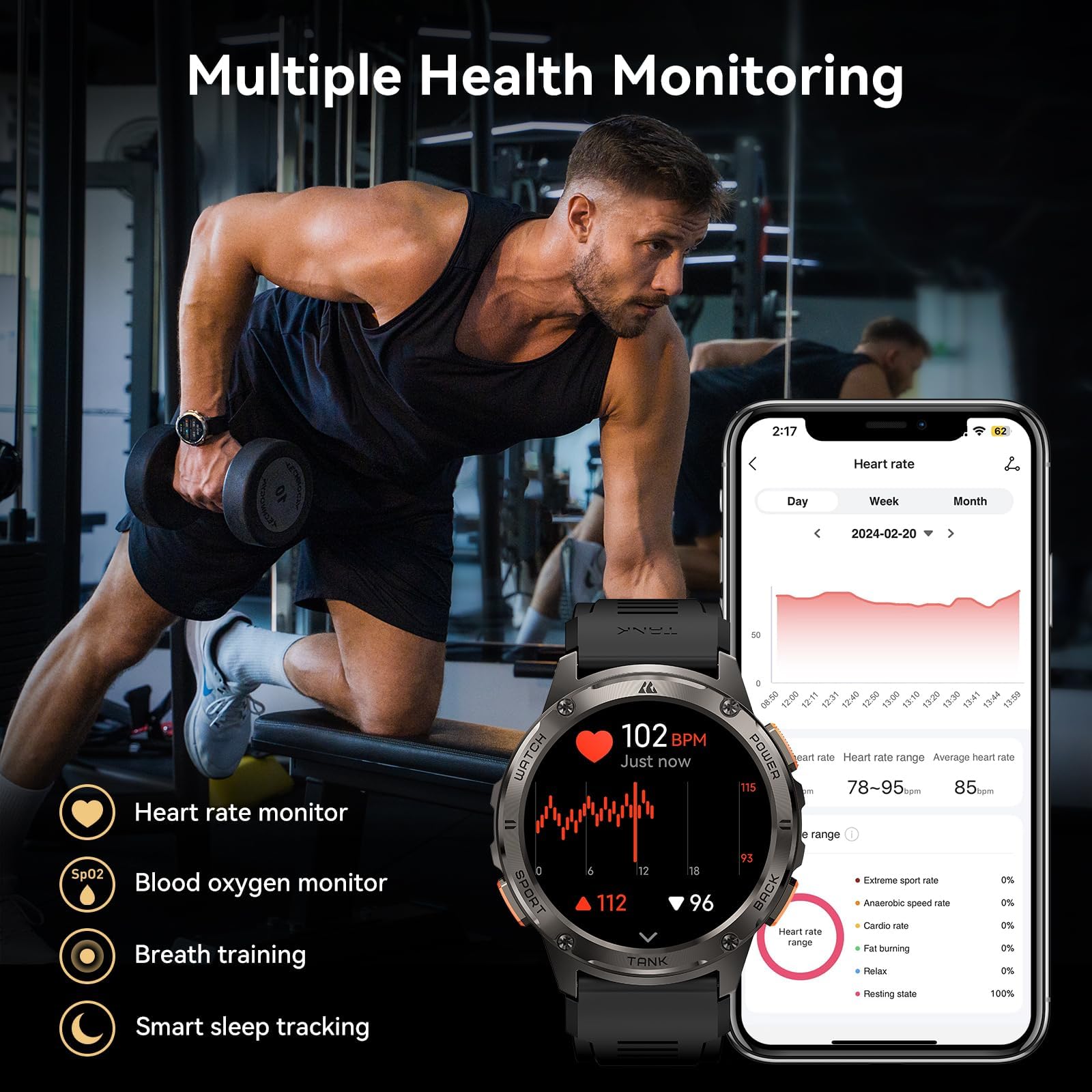 AMAZTIM Smart Watches for Men,60 Days Extra-Long Battery, Rugged Military Bluetooth Call(Answer/Dial Calls),1.43" Ultra HD AMOLED Display,Full Metal Body SmartWatch Compatible iPhone and Android