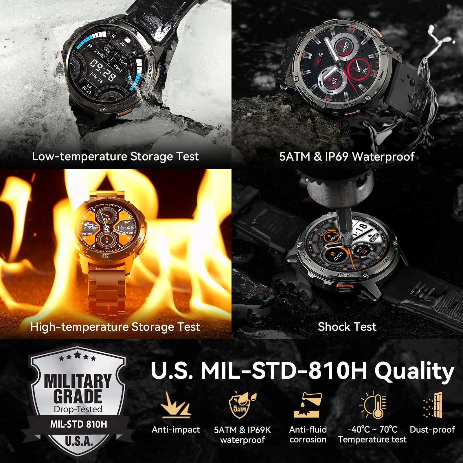 - ⌚Military Standard Quality - AMAZTIM T3 smart watches for men features Corning Gorilla screen , Mohs hardness up to 9H, it's strong enough to deal with a range of screen-destroying behaviors. Coupled with a full-metal Unibody, military-grade materials make it indestructible and most durable smartwatch. Successfully passed 15 military tests of the highest military toughness standard (MIL-STD-810H), including salt spray, rain, impact, etc. It can easily face any harsh environment.