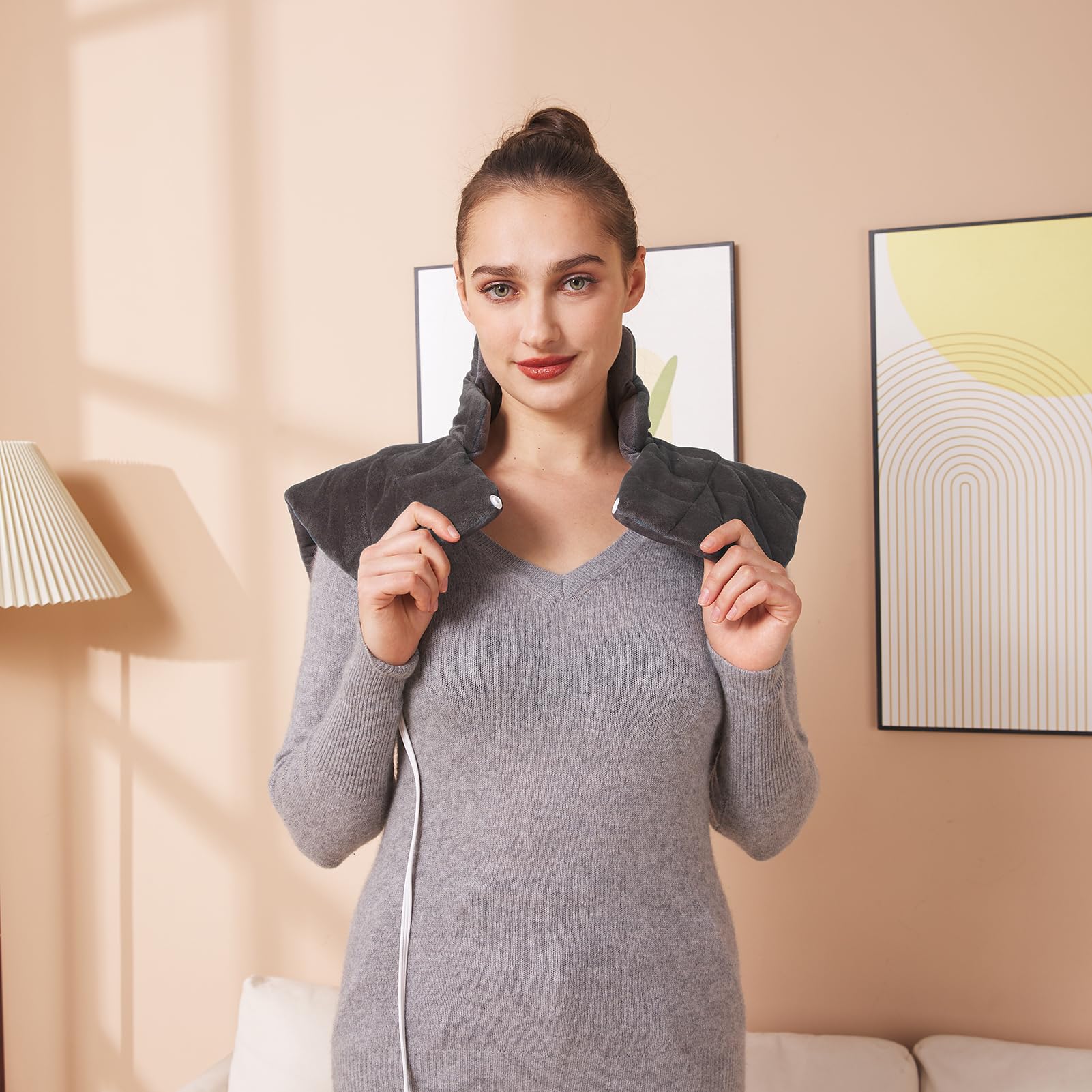 Ambershine 19''x24'' Weighted Neck & Shoulder Heating Pad, 2.5lbs with 12 Temperature Settings& 4 Auto-Off Timers, Pain Relief for Neck/Shoulder/Back, Christmas Gifts for Women Men Mom Dad (Gray)