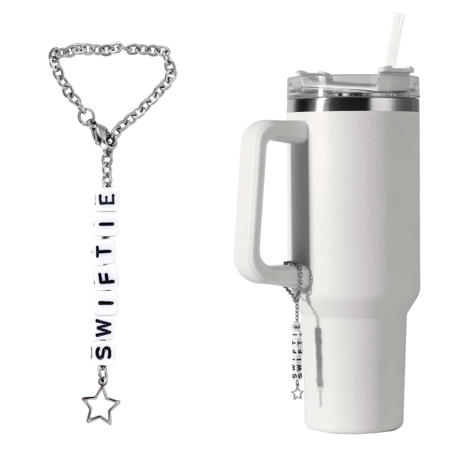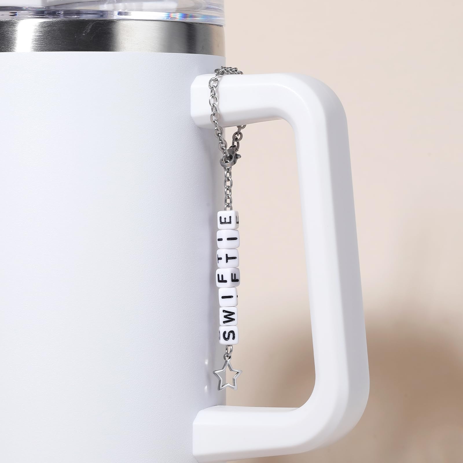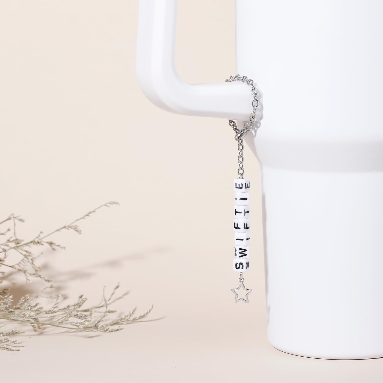 - Cute Stanley Cup Charms for Handle: This water bottle charm features the letter(S-W-I-F-T-I-E) and a pentagram pendant, visually pleasing and distinctive, adding a touch of music element to your stanleys, making your stanley cup with handle attractive and stylish. *PLEASE NOTE* Package comes with 1 pc letter charm as shown, stanley bottle not included. And customized services are not included.