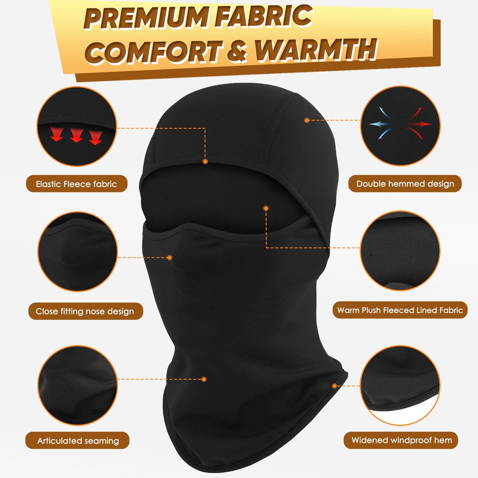- FULLY COVER: The improved mask design perfectly fits the contours of the nose and completely covers the face and ears. Keep entire head and face warmer in cold winter.