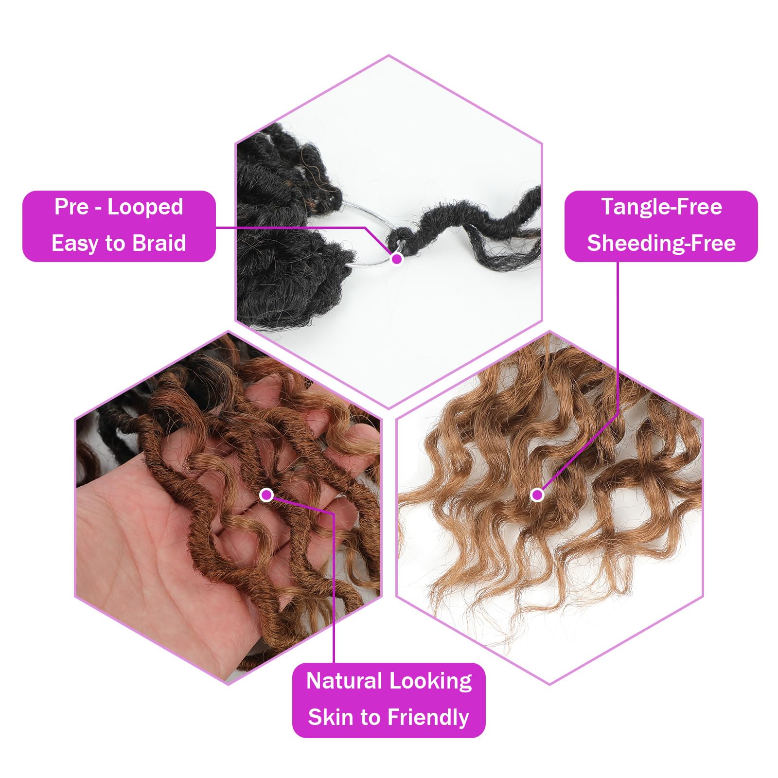 - 🌟【Easy To Install】:Pre-Looped Goddess Locs Crochet Hair,Individually Pre-Looped Are The Perfect Size.Come With One Crochet Needle And Five Colored Rings,Easy To Install And Remove, Save You Time And Energy, Friendly Beginner.